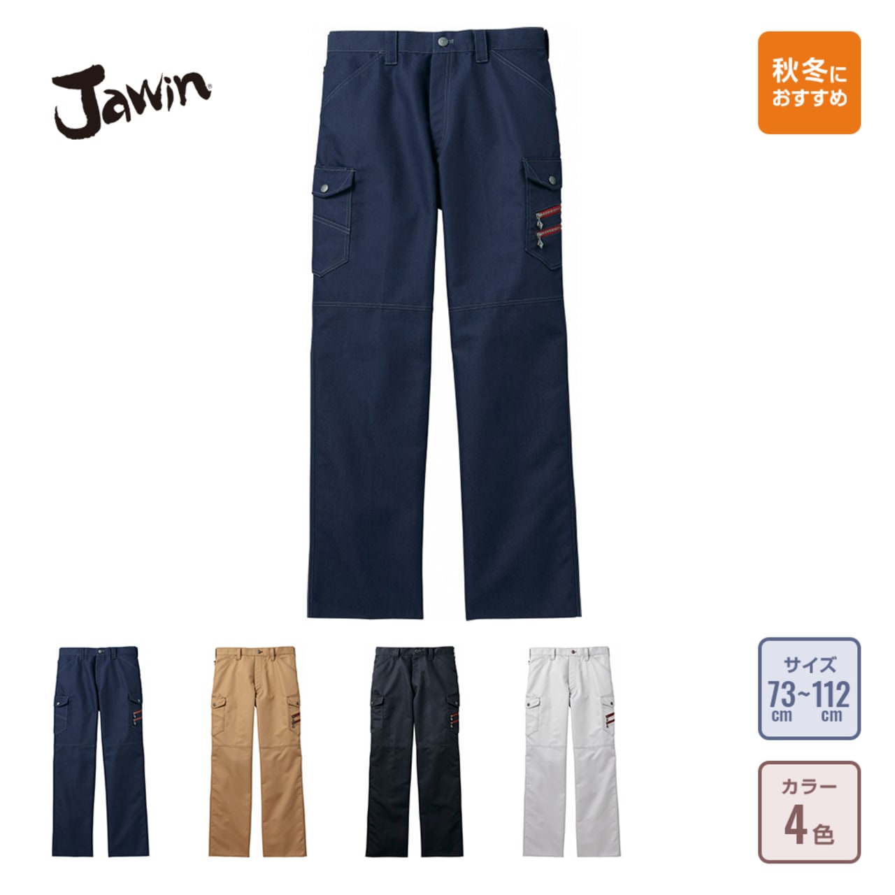 作業服のパンツ選びは、作業の効率を高めるためにも重要なポイントになります。機能性という側面から言えば、消臭&抗菌テープや4つのポケット、カラビナループなどは魅力的です。このパンツは、同タイプのジャンパーや長袖シャツと組み合わせることで、統一感も出すことができます。デザインは同タイプのジャンパーや長袖シャツと同じようにハード感を演出しています。作業服でありながらデザイン性が高いため、スタイリッシュな作業服としてきていただけるのもポイントになっています。