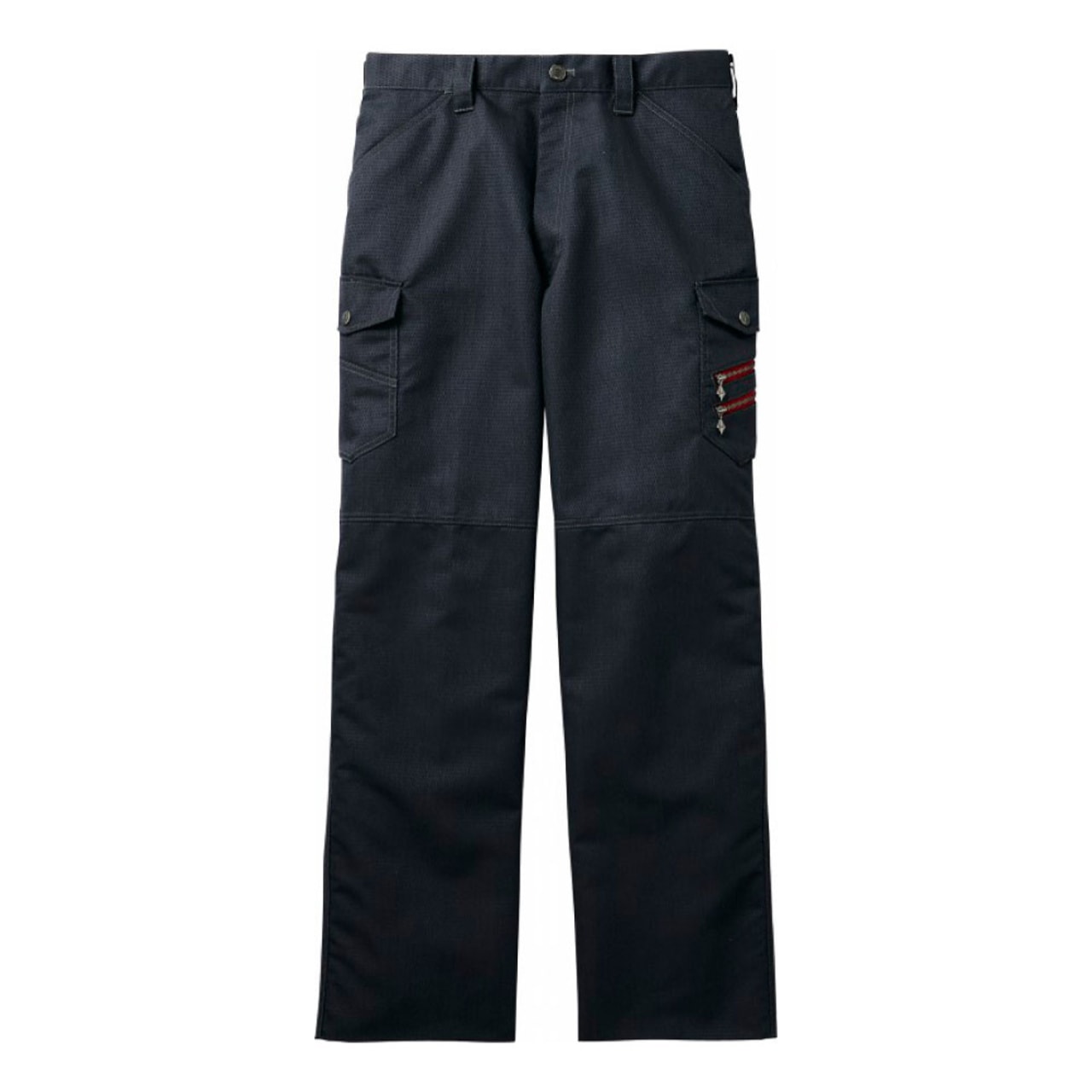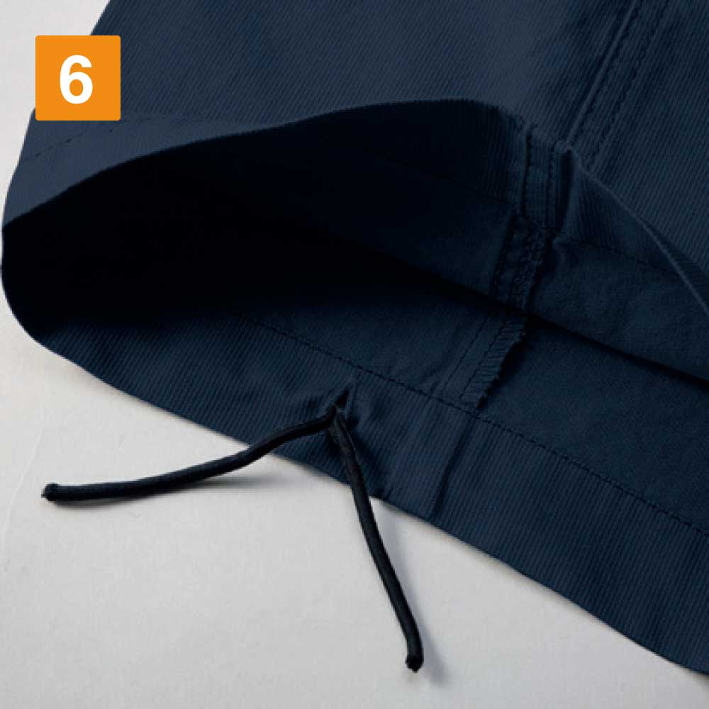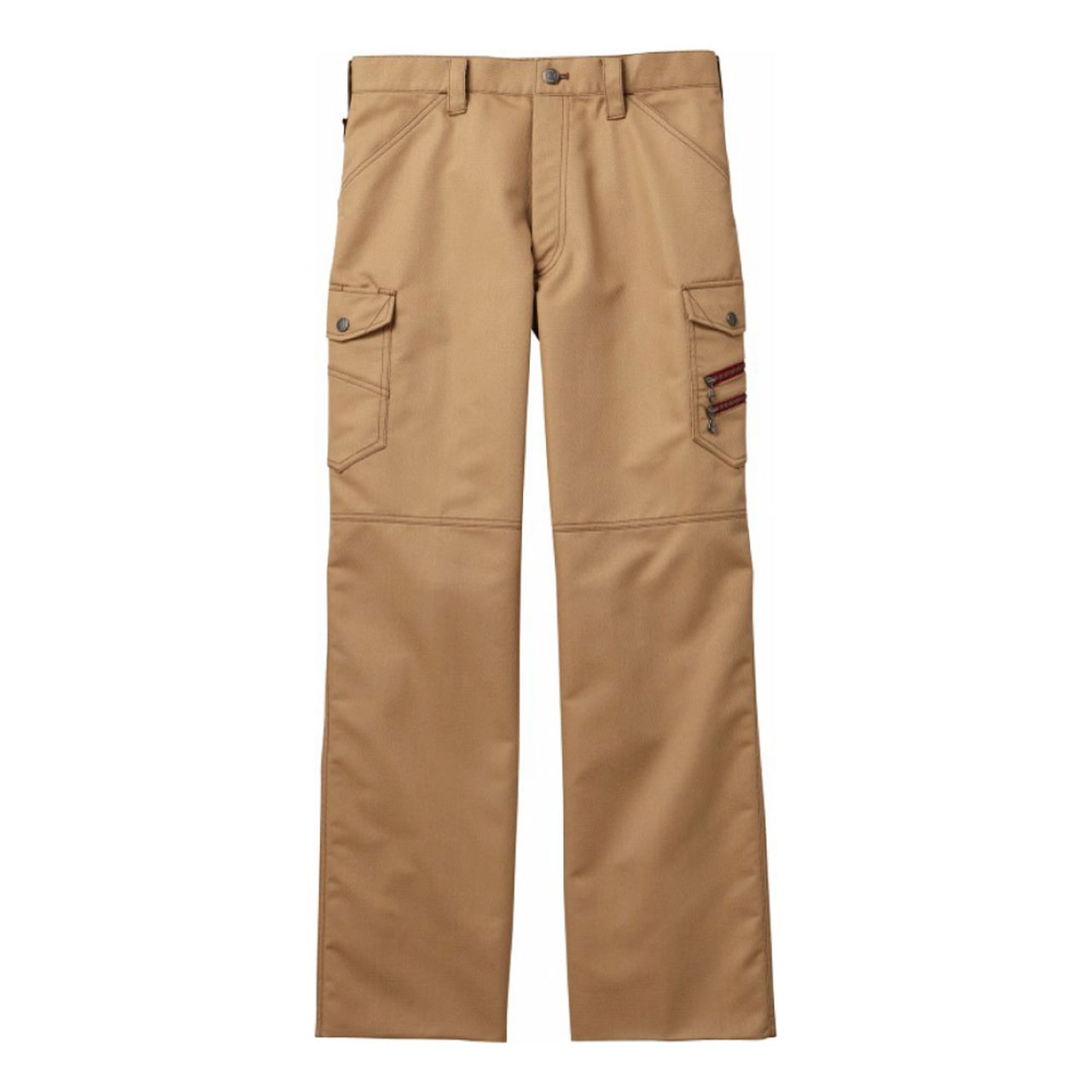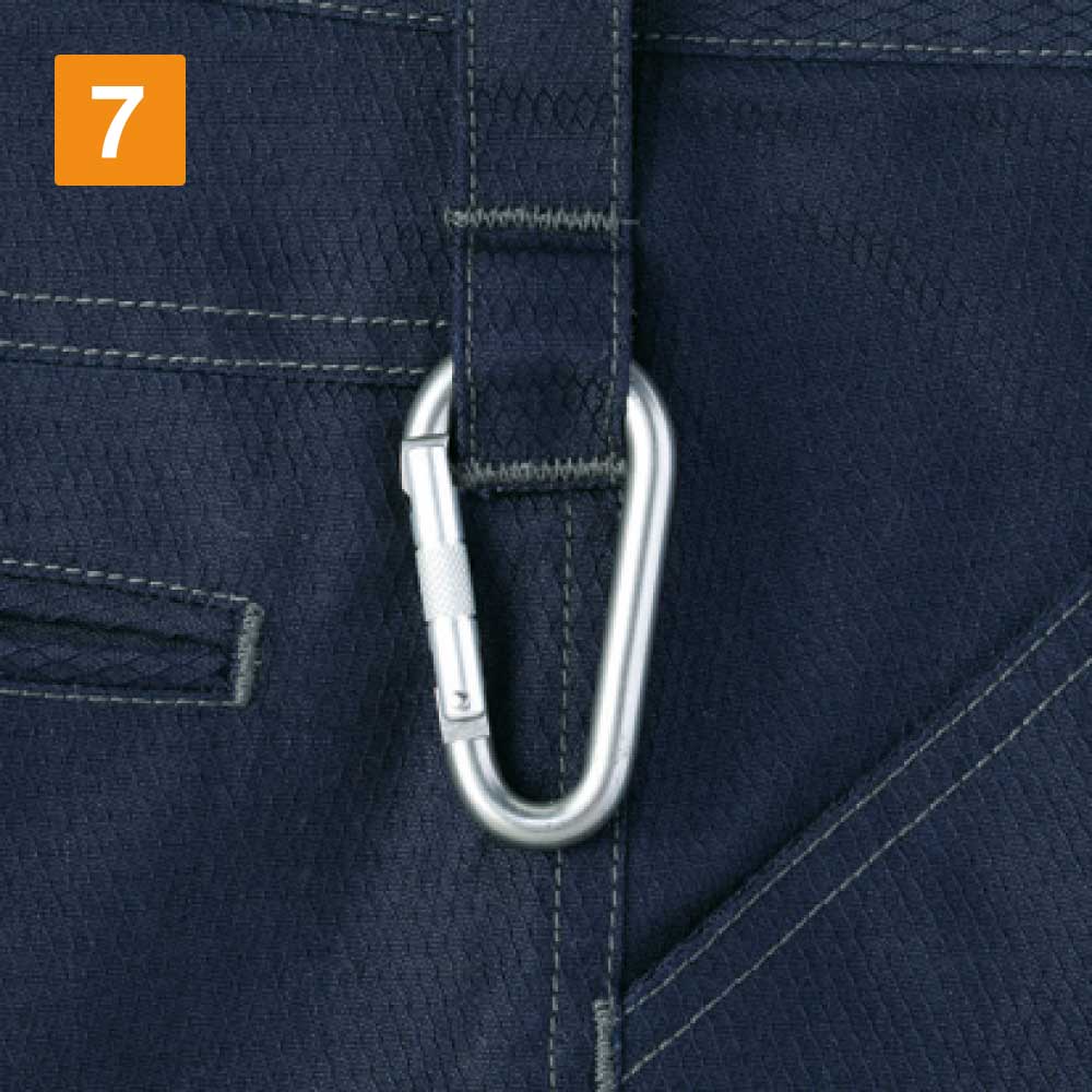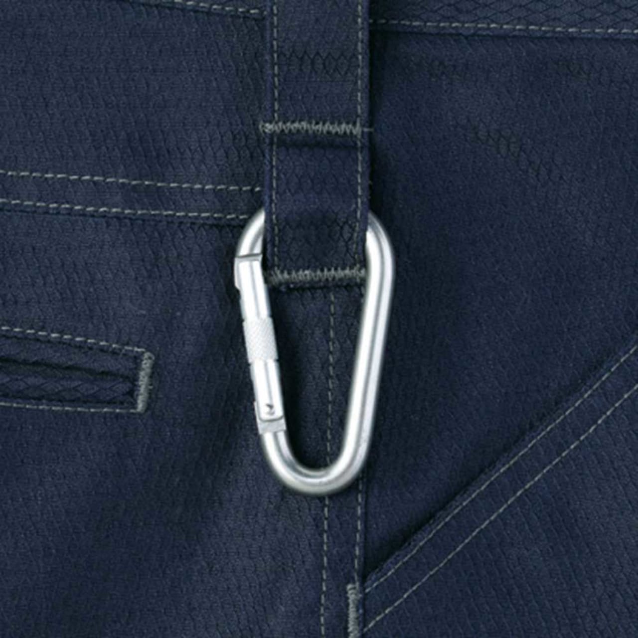 ノータックカーゴパンツは、消臭&抗菌テープを取り入れているため、汗をかいてもニオイなどを気にしなくて済みます。カラビナループもついているため、安全な作業を行うことができ、道具の持ち運びが便利といったメリットも感じられるデザインになっています。ポケットは4つあり、横にある2つのポケットにはボタンが付いているので、道具を入れておいても落下の心配が無く安心です。裾の紐通し穴によって作業ごとに適したスタイルに変えられるのも強みの1つです。