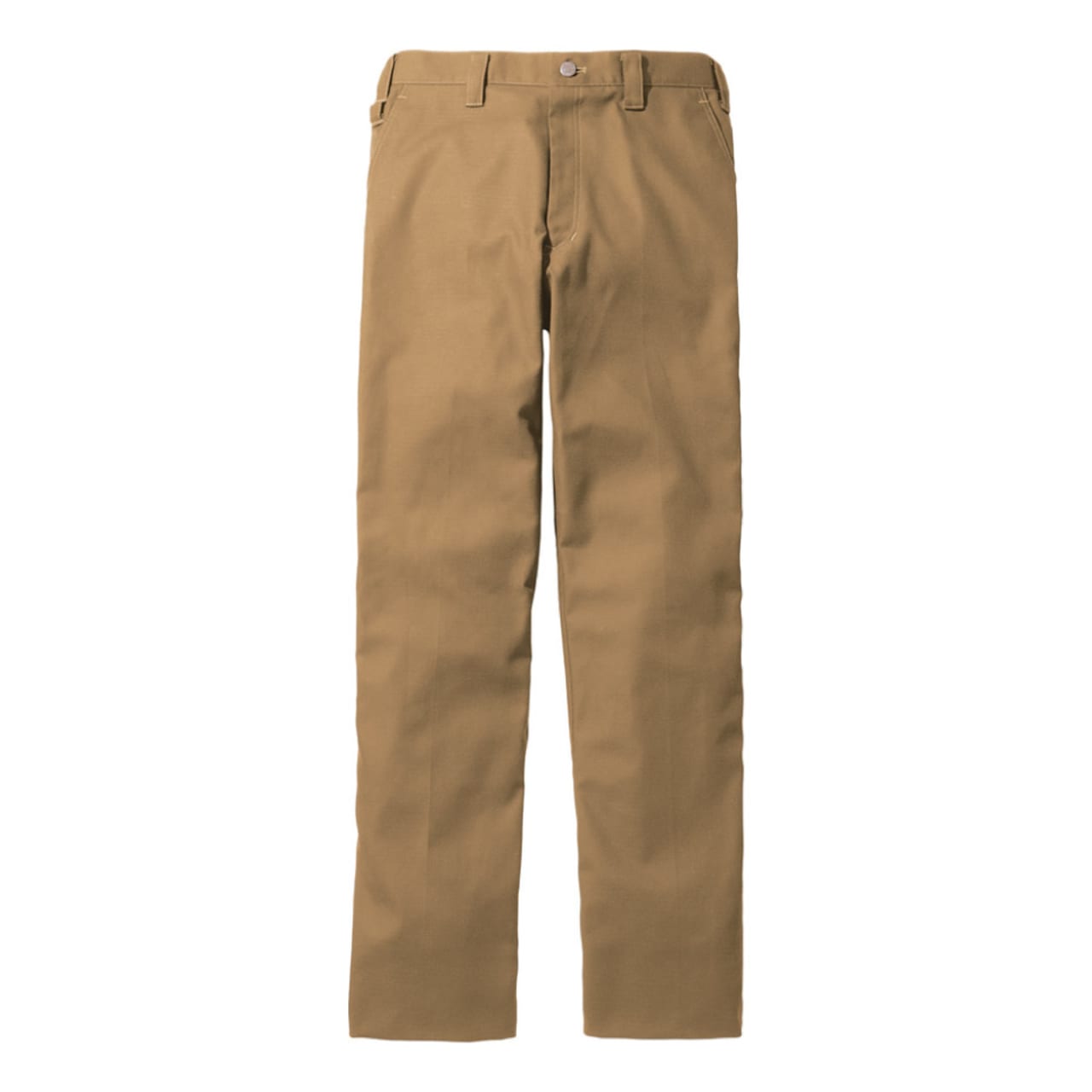ノータックパンツはとてもシンプルなデザインが特徴で、着心地の良さを出すためにCVC素材を使用しています。綿の混合比率が50%以上となるCVC素材は、綿特有の柔らかな風合いを生かしつつもポリエステルの耐久性を併せ持つ秋冬対応シリーズにぴったりの素材です。作業パンツでありながらタックを取らないすっきりとしたデザインは、体型や年代を問わないので着る人を選びません。シャツやジャンパーといった他の作業服とも合わせやすいので、一着あると重宝するでしょう。また、右サイドにはカラビナループを配置しているので使い勝手の良さも特徴です。