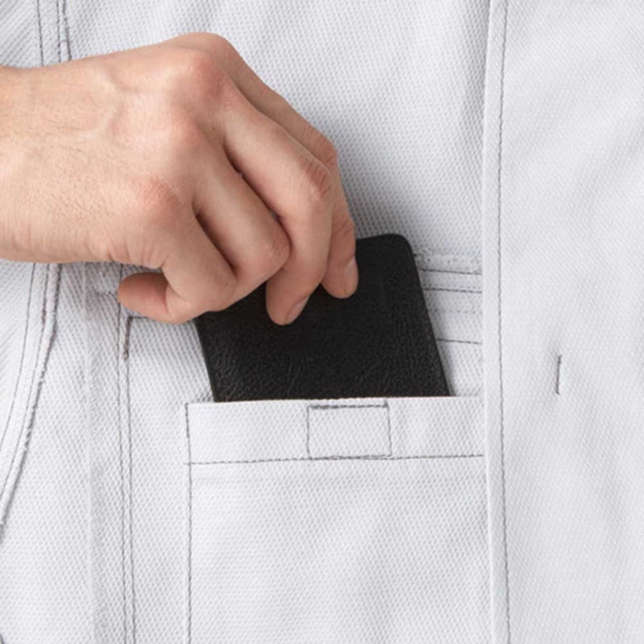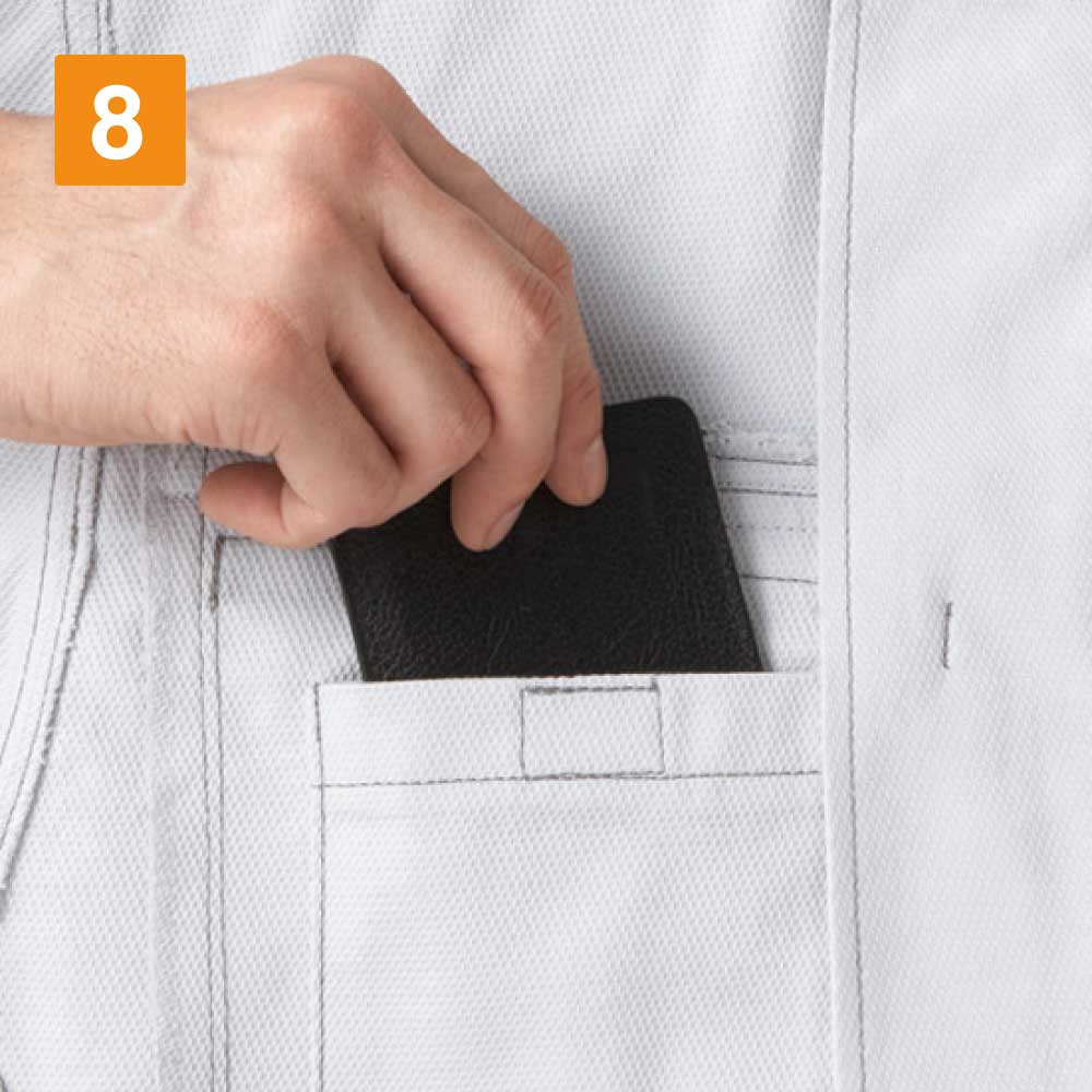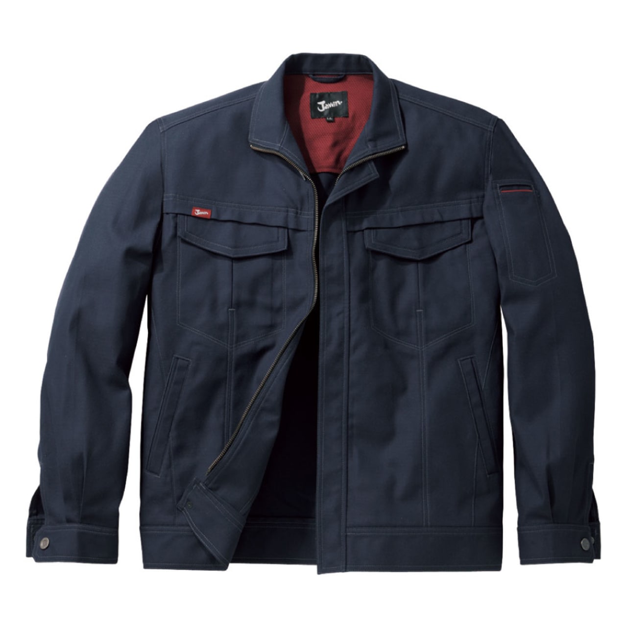 長袖ジャンパーは活用しやすさを考えて作られたワークウエアで、豊富な機能性を取り入れることで実際の現場で活躍できるような仕上がりとなっています。例えば、帯電防止素材を活用することにより、静電気に敏感な現場でも着用したまま安心して作業に取り組めます。さらに、ポケットも多数取り付けたことで、ペンやメモ帳、スマートフォンをまとめて収納することが可能です。ジャンパーの素材には綿とポリエステルをバランス良く配合したCVCドビーを採用。機能性だけでなく、着心地の良さや軽さを実現しています。