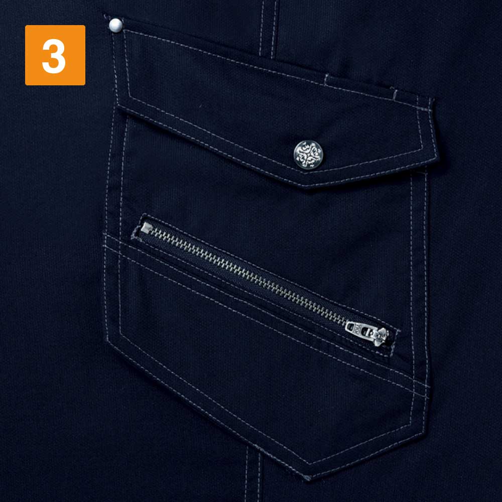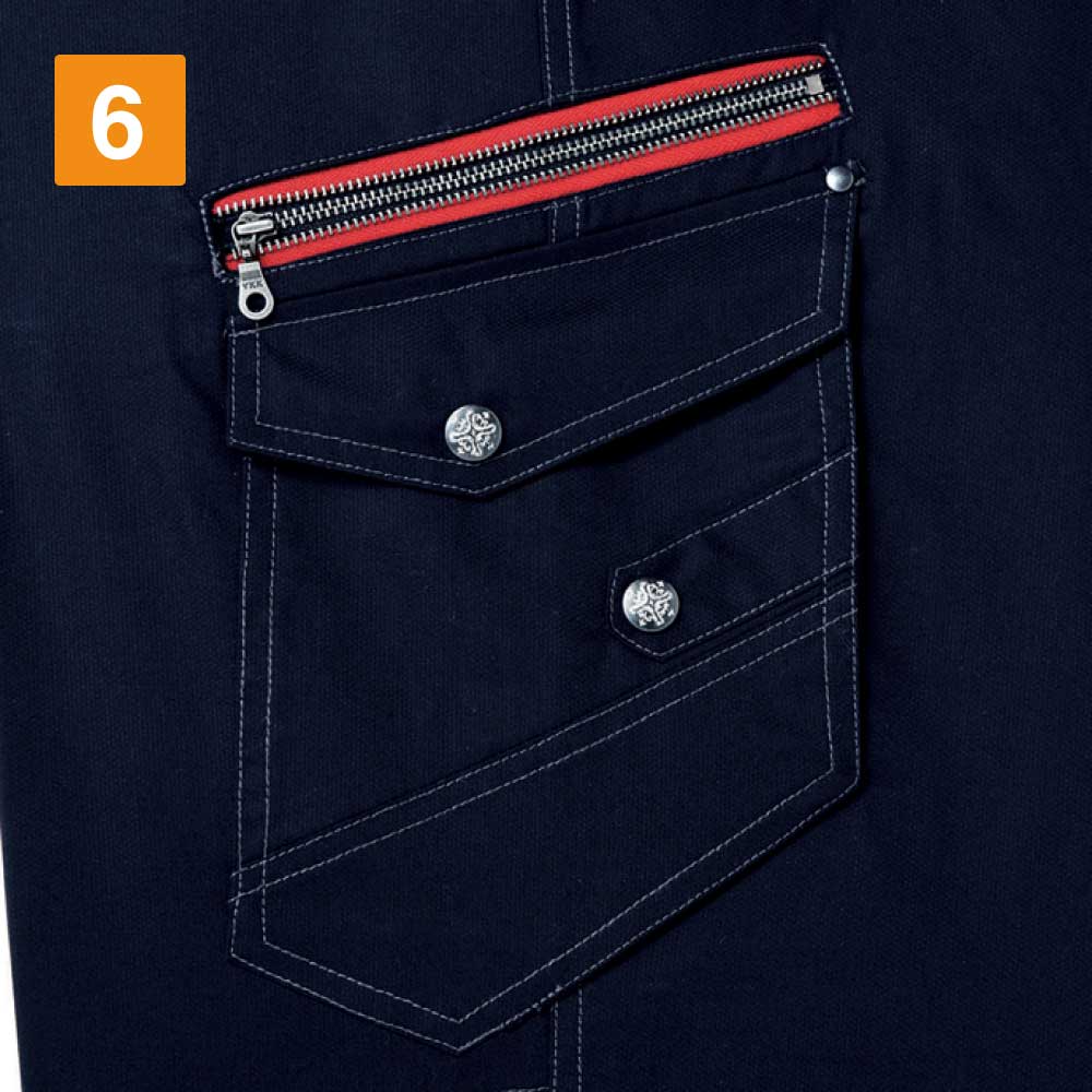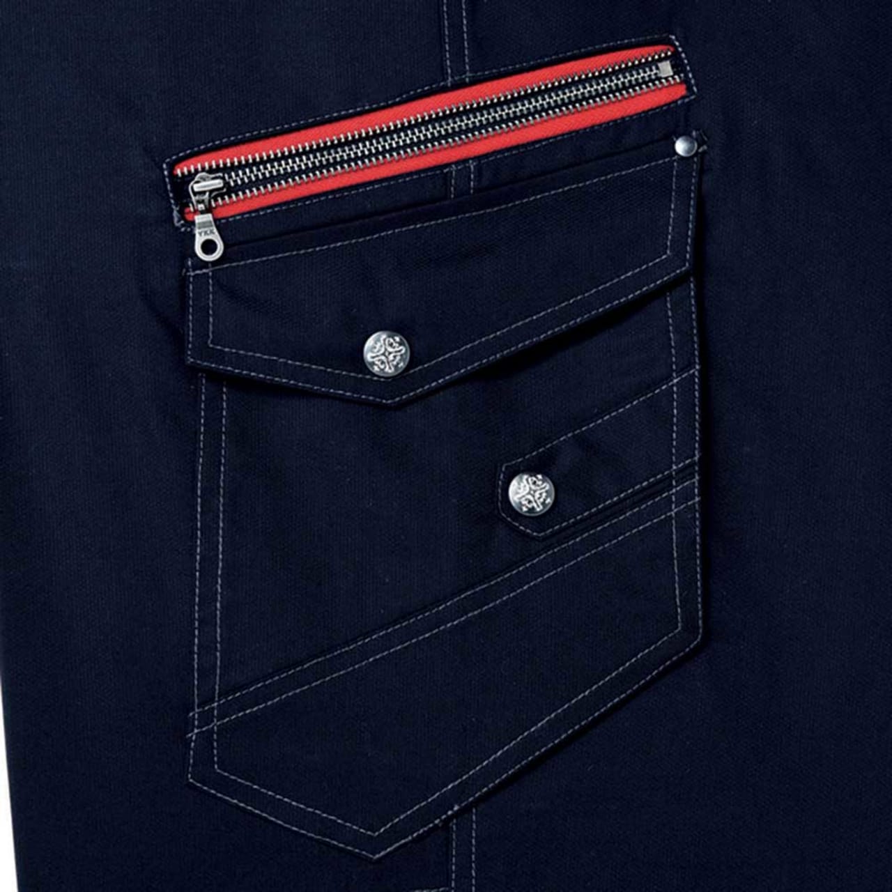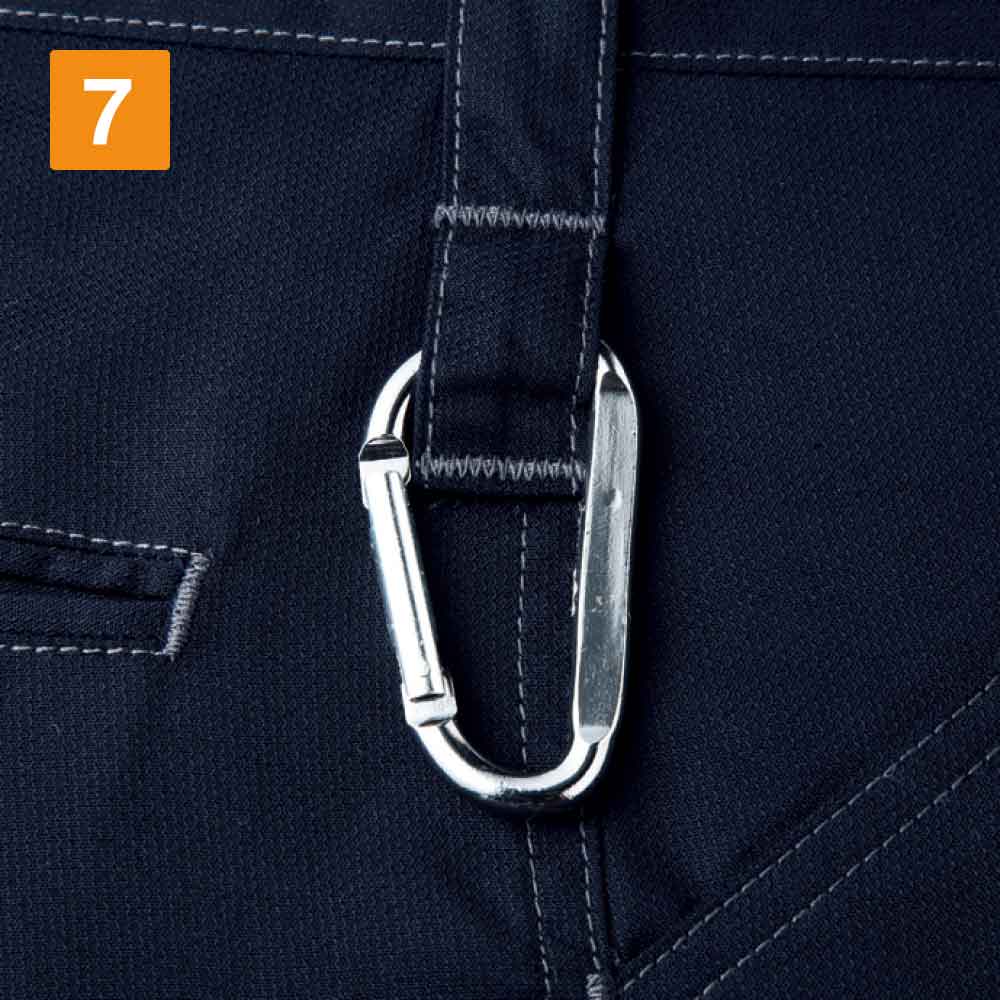 ノータックカーゴパンツは様々なアクセントパーツが光るパンツです。デザインボタンにデザインファスナー、アクセントカラーなど、ワークウェアにさらなるデザインを求める方にも最適な一着となっています。また、使用する機会の多いタックボタンは、使いやすい大きめのサイズを採用。裾には紐を通す穴があるので、簡単に長さが調節できます。現場に合わせて調節しやすいので、働く環境や業種を選ばずに着ることができます。