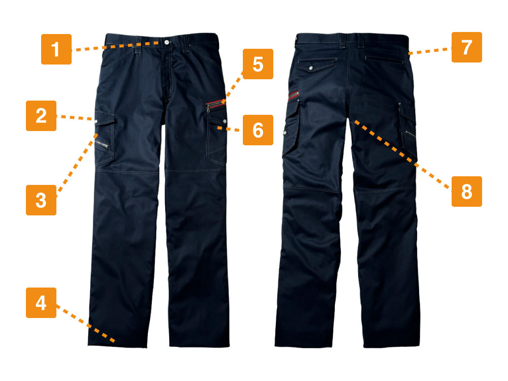 こちらのカーゴパンツはノータックデザインが特徴的です。従来のワークウェアは大きなシルエットでルーズな印象がありましたが、ノータックにしたことでスマートなシルエットとなっています。細身のウェアが好まれるようになったため、ノータックカーゴパンツは今では主流のデザインです。Jawinシリーズは見た目と機能性の両方を追求。なかでも、こちらのノータックカーゴパンツは、スマートで利便性の高い作業着を求めるワーカーに人気があります。カラーは全4色で展開しており、落ち着きのあるダークテイストとなっています。