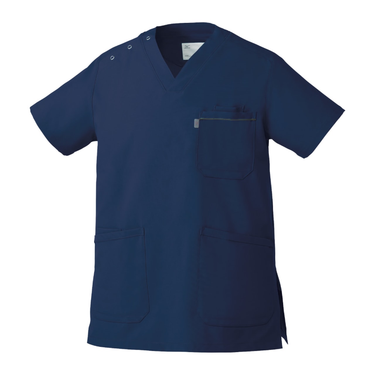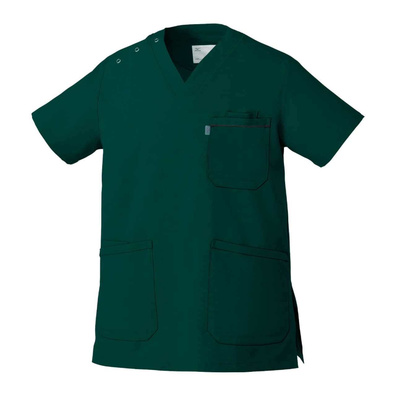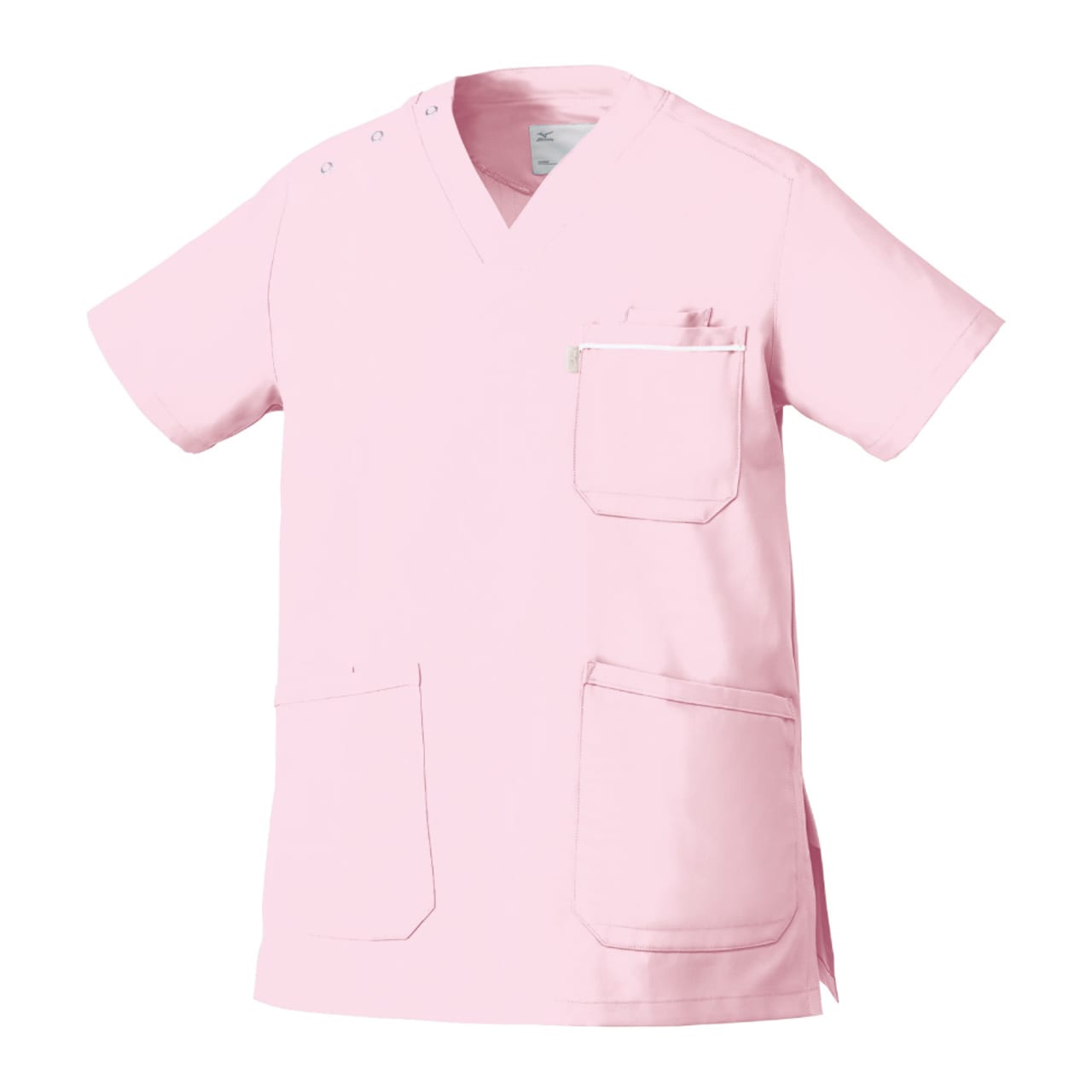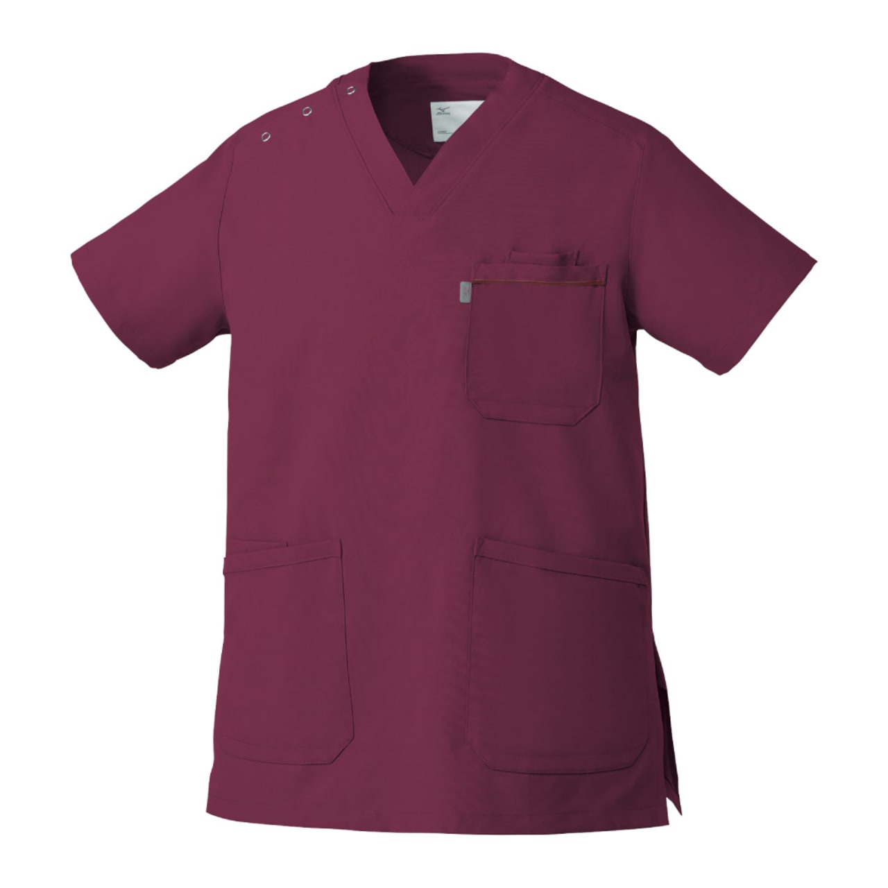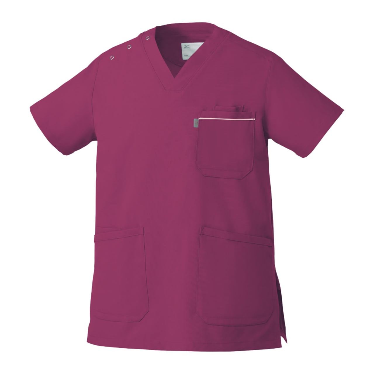 胸元・腰回りが見えない「エチケット機能」が特徴の「ミズノ」の男女兼用スクラブです。胸ポケットに物を入れていても、かがんだ時に胸元が見えないだけでなく、さらに長めの着丈で、かがんでも腰回りやインナーが見えない設計になっているので、アクティブワークの方にはおすすめです。また、SEK(赤)認証の制菌加工が施されているので、繊維上の細菌の増殖を抑制、清潔感をキープ。透け防止機能のほか工業洗濯対応と、大変優れたウエアです。