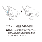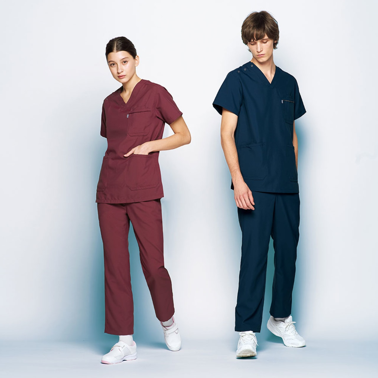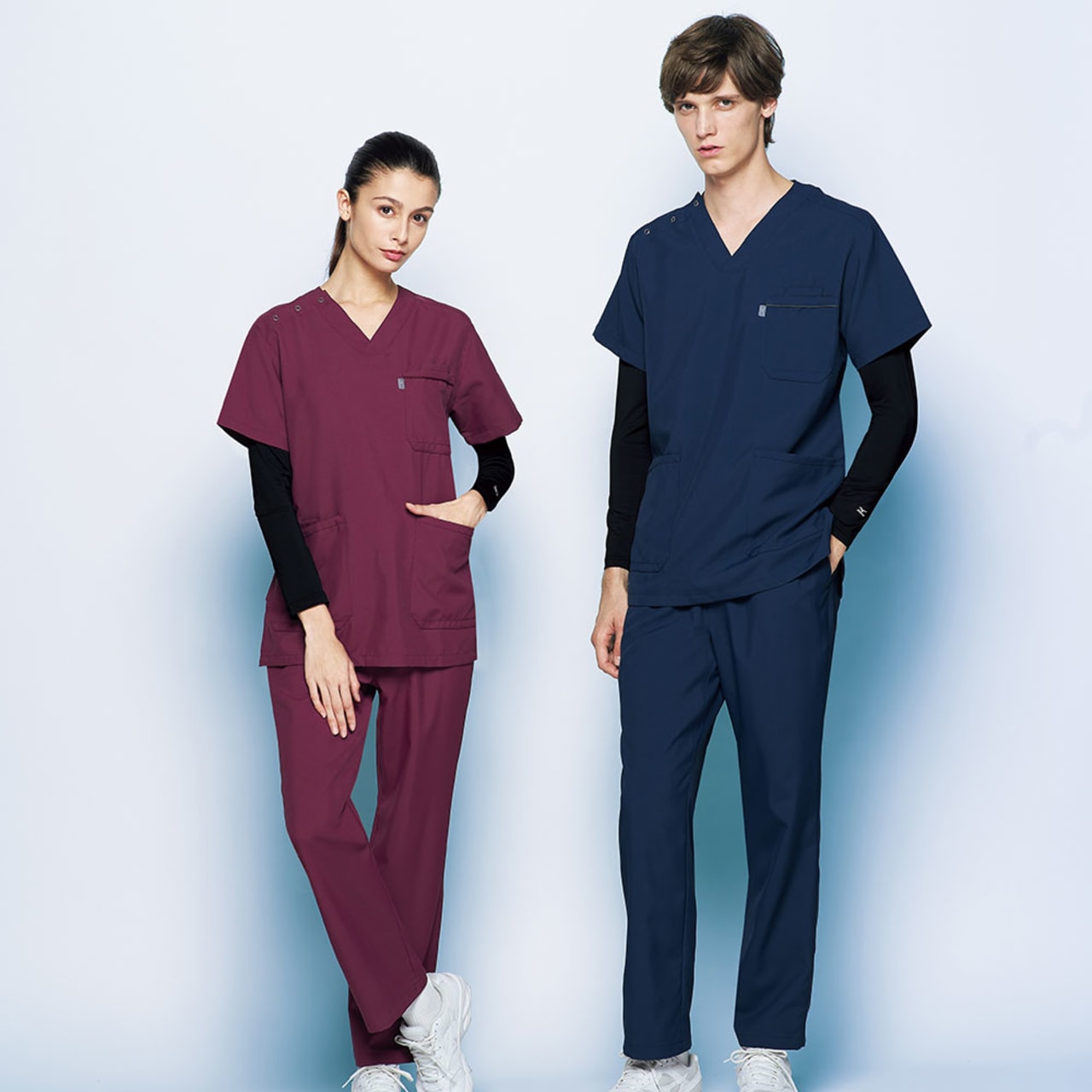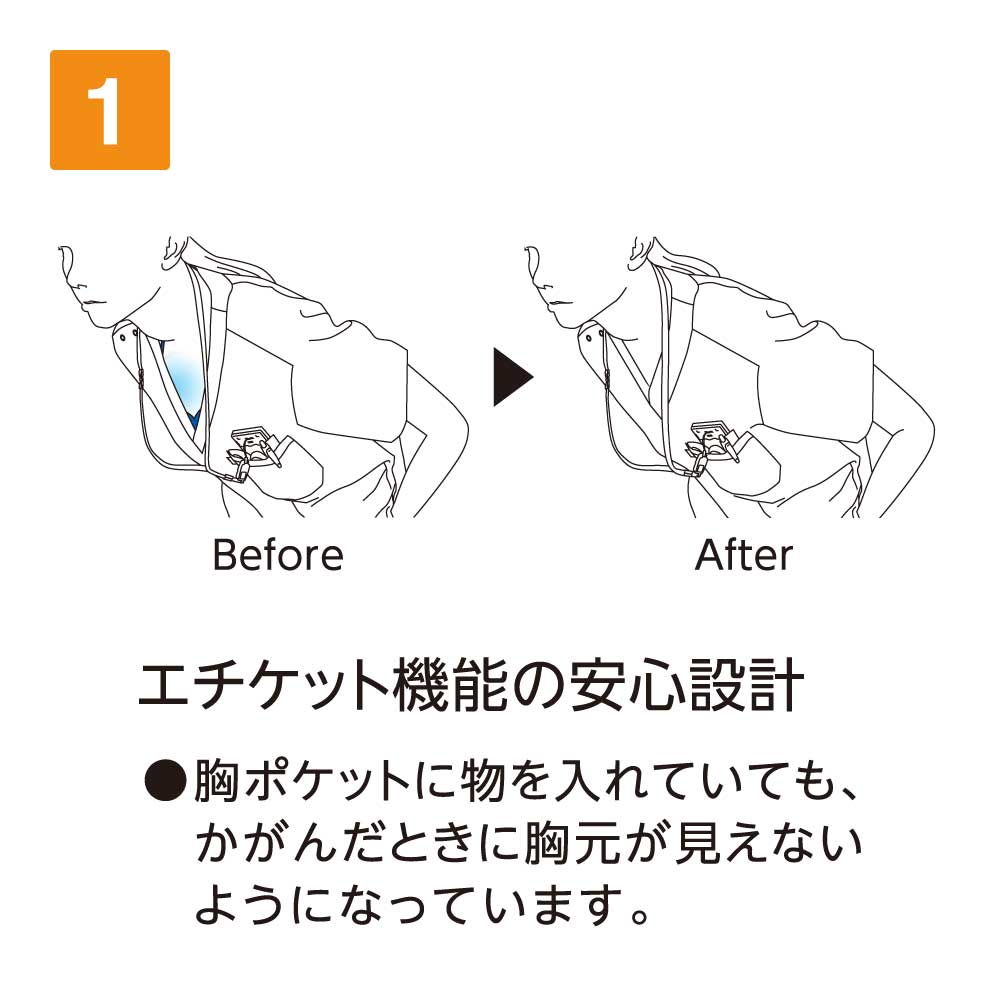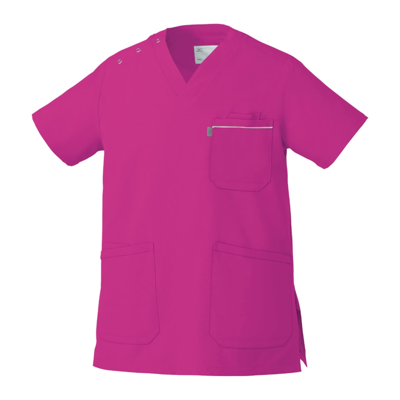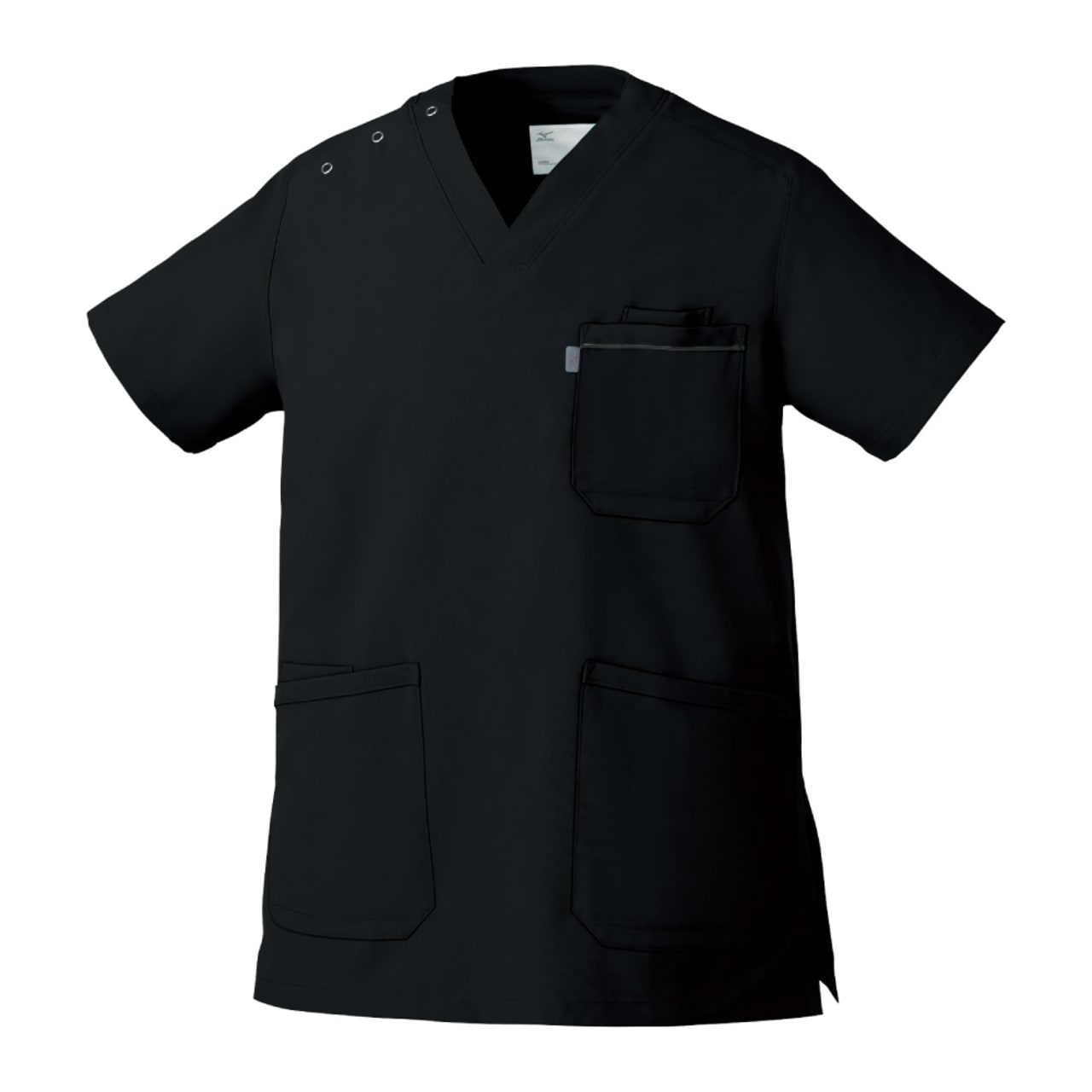 胸元・腰回りが見えない「エチケット機能」が特徴の「ミズノ」の男女兼用スクラブです。胸ポケットに物を入れていても、かがんだ時に胸元が見えないだけでなく、さらに長めの着丈で、かがんでも腰回りやインナーが見えない設計になっているので、アクティブワークの方にはおすすめです。また、SEK(赤)認証の制菌加工が施されているので、繊維上の細菌の増殖を抑制、清潔感をキープ。透け防止機能のほか工業洗濯対応と、大変優れたウエアです。