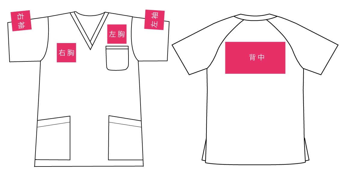 ピンク部分は、刺しゅう、プリントどちらもOK