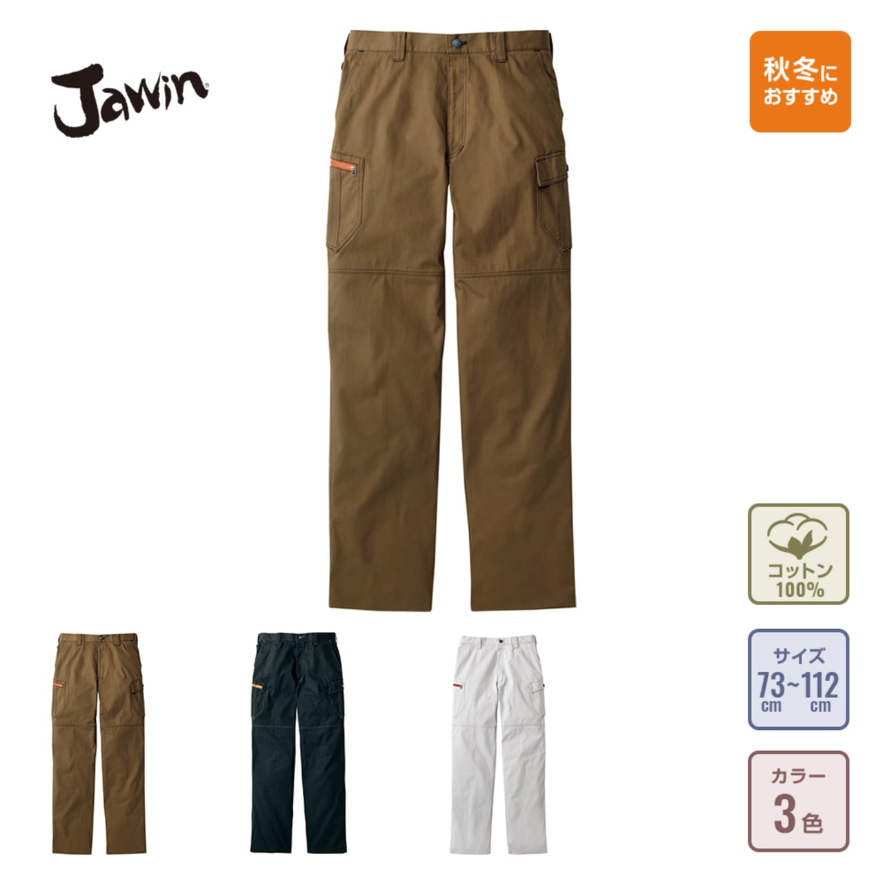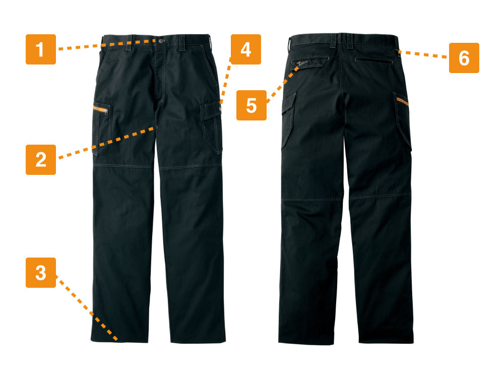 自重堂のノータックカーゴパンツは、綿100%のランダムコードを使用し、着こむほどに味が出るスタイリッシュなワークウェアに仕上げています。存在感があるエッジの効いたデザインで、シャープなイメージの作業服となっています。また、秋冬の作業中も汗蒸れによる臭いが気にならないように、股部分に消臭&抗菌テープを採用し、雑菌もシャットアウト。動きやすく作業の邪魔にもなりにくいノータックズボンです。