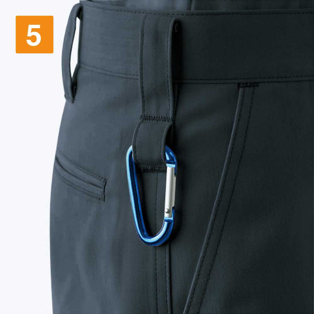 ノータックカーゴパンツはハードなスタイルを実現しつつも、とても履き心地の良い素材の採用で、動きのある仕事でも窮屈にさせない点が特徴です。無駄にポケットを多く付けることはせずにゴテゴテしておらずシンプルに履けるようになっています。カラビナループを附属することで、使いやすさをアップさせており、さらにこだわりのDEO+テープで臭い対策も抜群となっています。カラーはチャコールグレーとクロムシルバー、ミストブルーの3色が展開されており、どれもおしゃれな着こなしができるように見せてくれるものばかりです。現場に合わせてカラーをセレクトしても素敵でしょう。