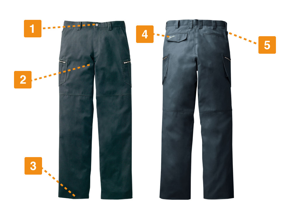 ノータックカーゴパンツは作業服姿でも見た目を気にする方に最適のパンツです。作業服に見えないような見た目は起毛ミニヘンリンボンの採用で肌触りはよく、ポケットを少なめにすることで非常にスマートに見えます。また、こだわりのタックボタンやロゴ刺繍でワンポイントも光るパンツとなっているのが特徴です。附属されているカラビナループを使って作業服として機能性ももちろんのこと、様々な動きに対応できる柔らかい素材で、いつまでも愛用し続けたくなる理由がこのノータックカーゴパンツにはあります。3色展開のカラーラインナップから男性らしいクールなスタイルを作り出すのも楽しく思える一着となっています。