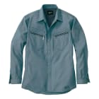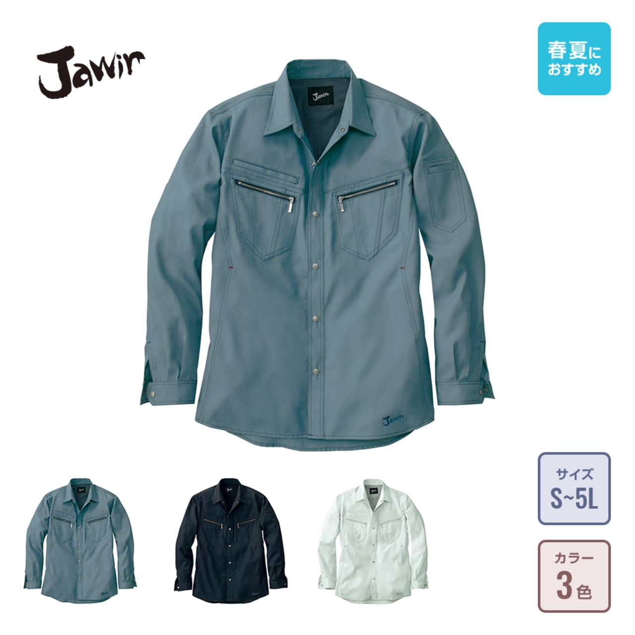 デザイン性に優れたフロントボタンやロゴ刺繍など、一見作業服とは感じさせないデザインが魅力の長袖シャツです。春夏対応シリーズとして汗ばむ季節でも問題なく着用していただけます。また、機能性の高さも備えており、背当てメッシュやメッシュの背中ベンチレーションは速乾性に優れおり、乾きやすい点が特徴です。他にも右胸の二重ポケットや左袖のペン差し、両脇と両肩に備えた消臭&抗菌効果のあるテープなど、働くうえであると便利な仕様がいくつもあるため、快適に着用していただけるでしょう。