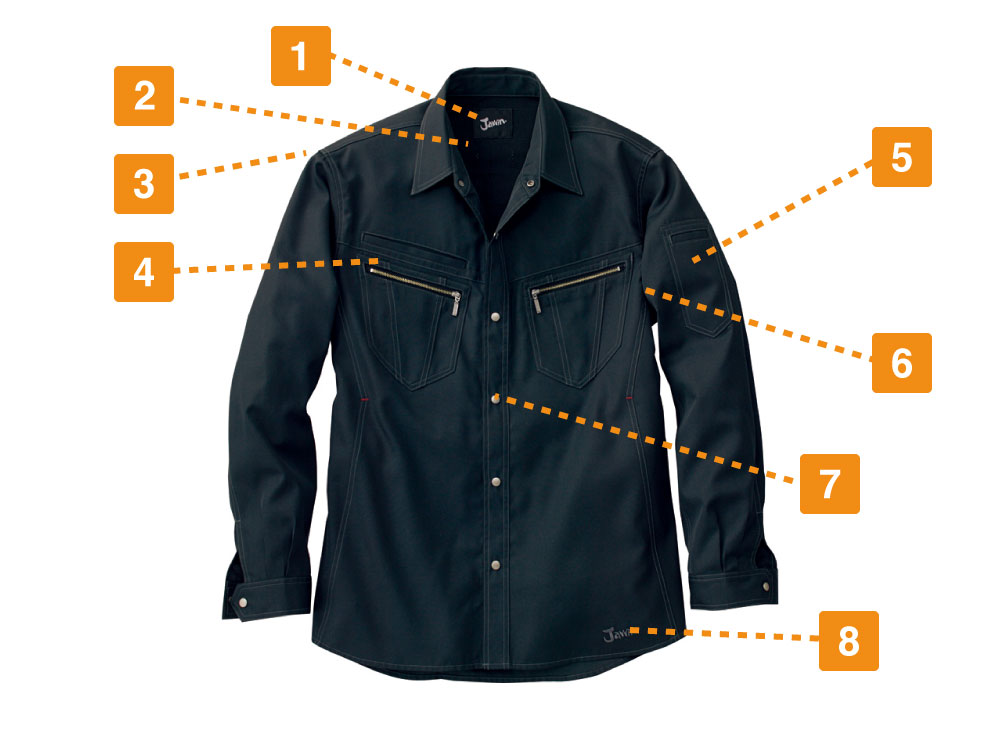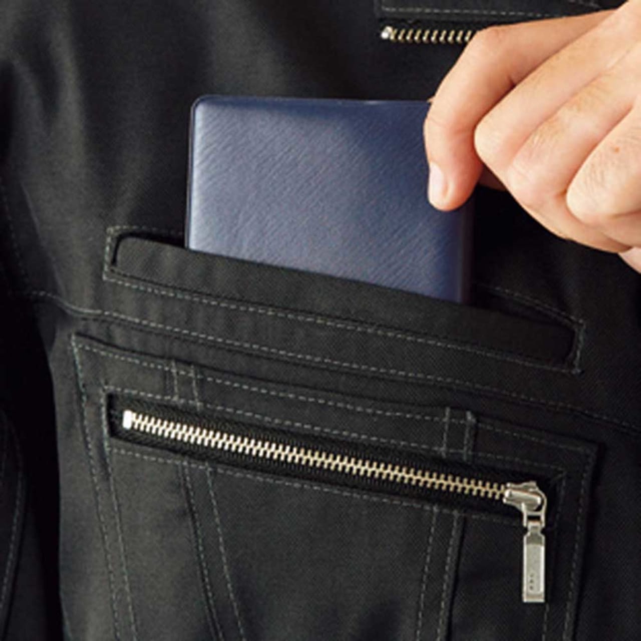 作業時に必要なちょっとした道具を入れられるファスナー付きの胸ポケットやペン差しをしっかり備えながらも、デザイン性の高さを両立させた長袖シャツです。シックブラック・シルバー・ミストブルーとカラー展開も豊富で、ほかの作業服にも合わせやすい色合いとなっています。速乾性に優れた背当メッシュや背中ベンチレーションは、汗をかいても不快に感じることがなく、幅広い現場でご使用いただける長袖シャツとなっています。お手持ちの作業着にも合わせやすいことから、追加購入する場合にもおすすめの一着です。
