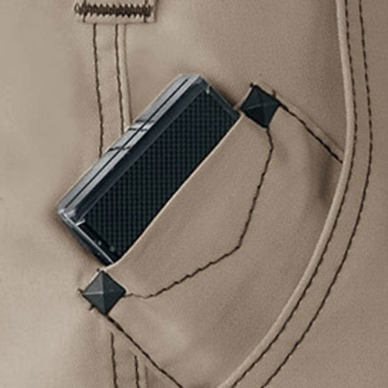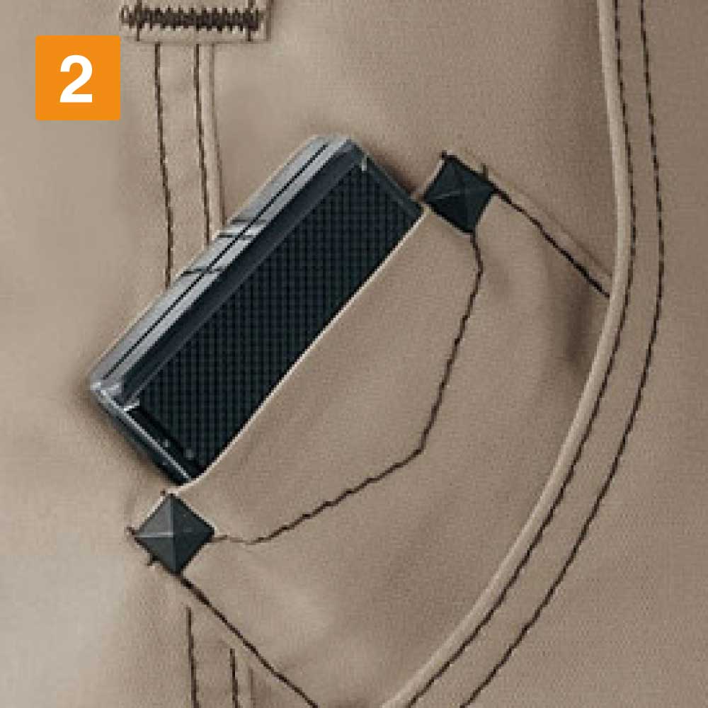 スマートな見た目ながらも収納力や機能性に優れたノータックカーゴパンツ。二重構造になっているポケットは、スマホなどのツールの収納に便利です。また、サイドポケットについている小物入れや、バックにあしらわれたカラビナループなど、機能面でも仕事をアシストします。カラーはサンドベージュ、アーミーグリーン、シルバーの3色で、アウターに響かない落ち着いたカラー展開で使い勝手の良さが魅力です。