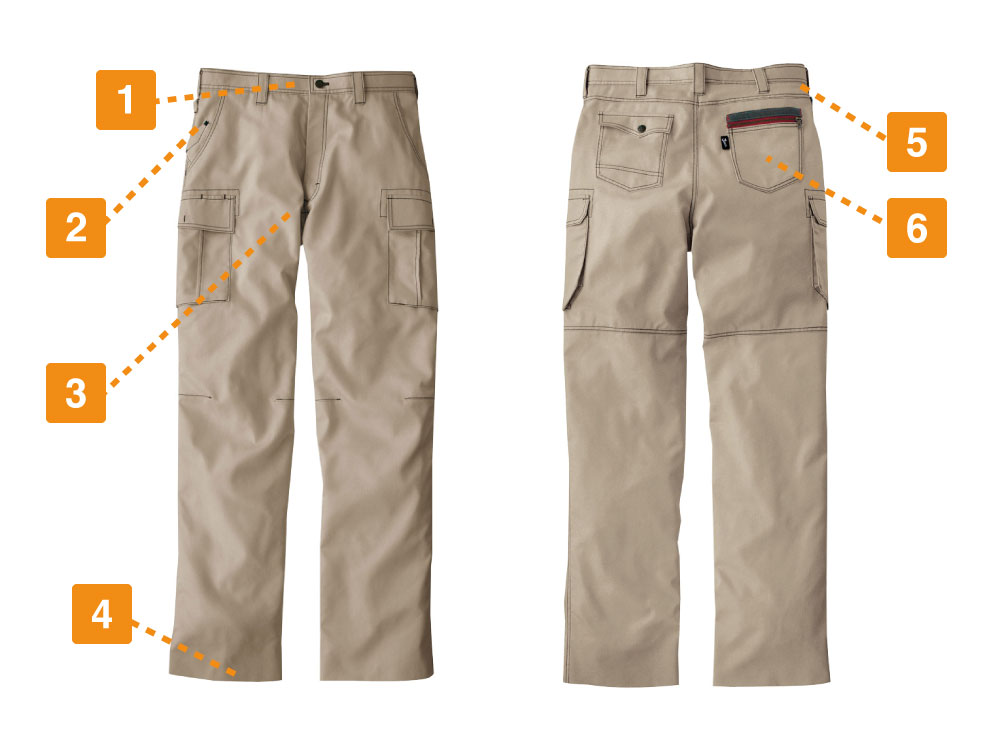 すっきりとしたスタイリッシュな見た目が特徴のノータックカーゴパンツです。機能面も抜群で、大容量のポケットや、カラビナループなど、仕事や作業に役立つ利便性に優れたデザインも大きな魅力のひとつです。パンツの内側に施された消臭&抗菌テープが気になるニオイや雑菌を抑え、爽やかで清潔感あふれる着心地を実現しました。通気性もバッチリで、さまざまな現場に対応できる便利なパンツです。ミリタリーテイストのシンプルなデザインのパンツは、ほかの作業着にもなじみやすいです