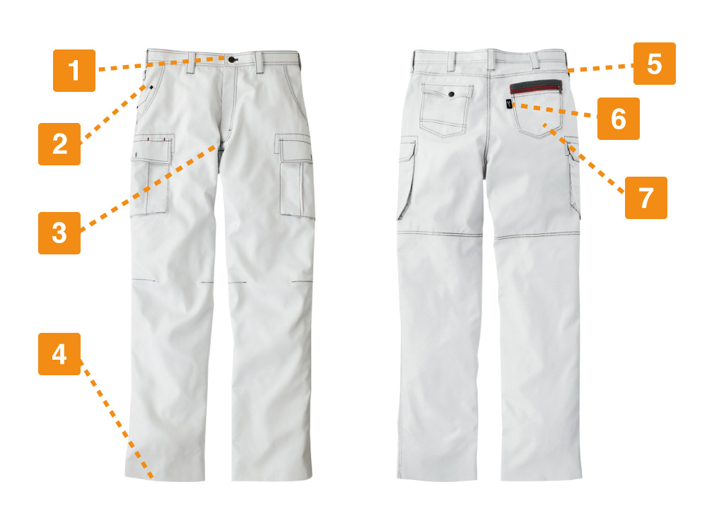 綿65%、ポリエステル35%のCVCブロークンドビーを使用した春夏用のノータックカーゴパンツ。CVC素材は、肌に優しい綿の比率が多いため吸汗性も高く蒸れを感じにくい特性があり、春から夏にかけて快適に過ごすことのできる素材です。また、ベンチレーションメッシュを採用することにより、こもりやすい熱を逃しやすくするため、穿きごごちがさらにアップ!ストレッチ性もあり、作業時の足まわりのスムーズな動きをサポートします。消臭&抗菌効果のあるDEOプラステープも付いており、汗ばみやすい季節や屋外での過酷な作業下でも、汗の匂いを気にすることなく作業に集中することができます。