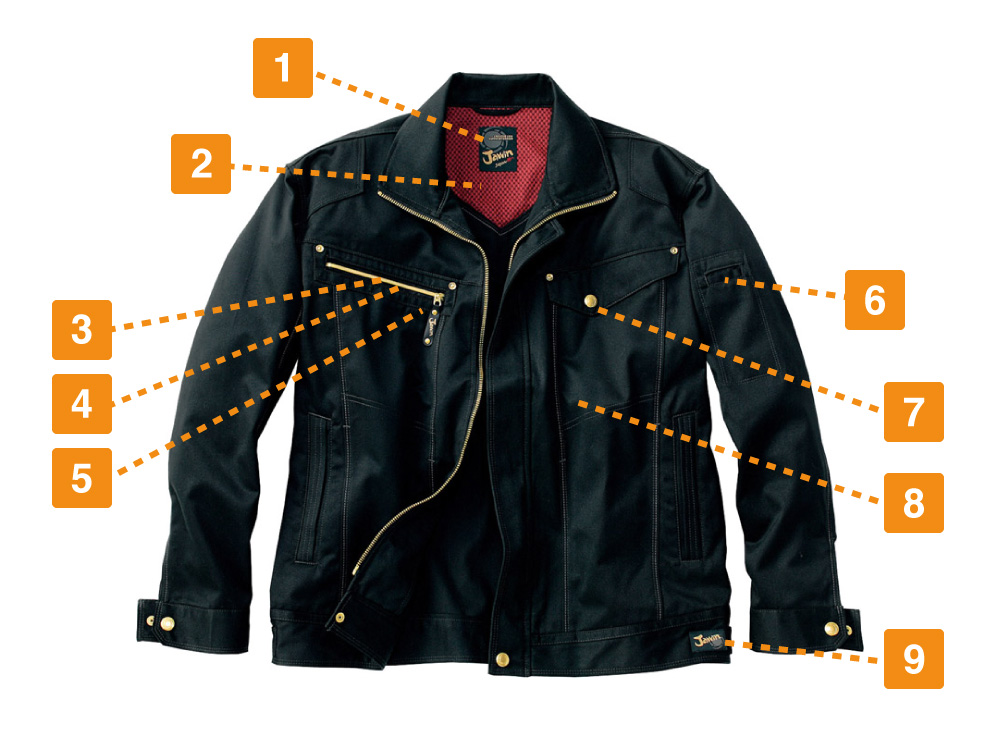今までの機能性重視のジャンパーとはひと味違うスタイリッシュなデザインに加えて、オリジナルデザインにこだわったボタンやスライダーは華やかなゴールドカラーがポイントとなっており、垢ぬけた印象に。定番のワークウェアに追加することで、できる男を演出できます。51500シリーズの発熱加工ノータックパンツやカーゴパンツを使ったセットアップもおすすめです。サイズはS~5Lと豊富で、カラー展開は4色のシックなカラーで自分のお気に入りの1着をお選びいただけます。