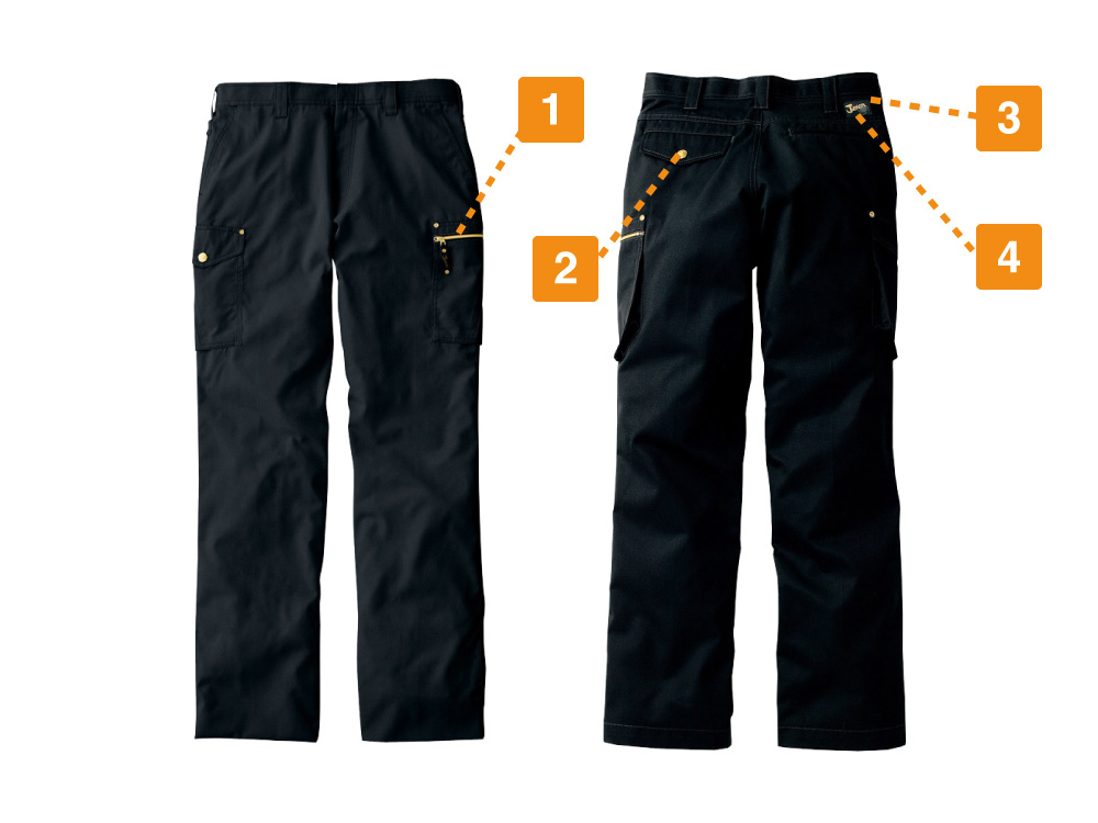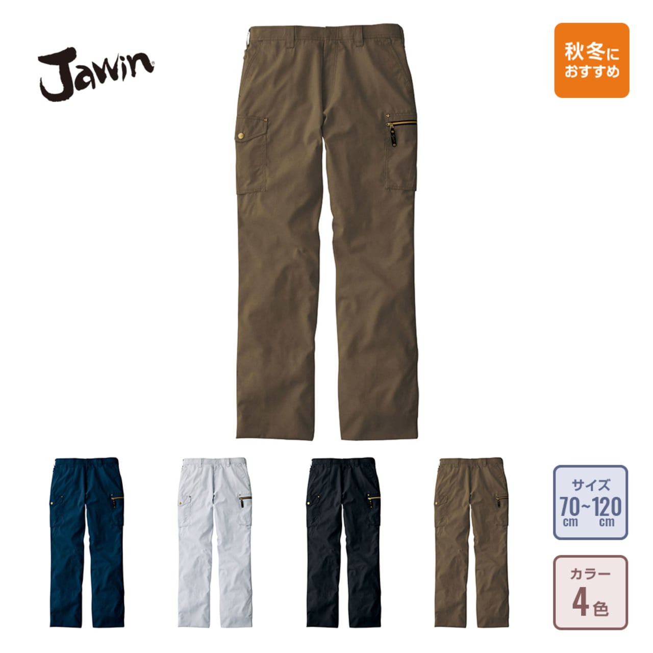 もたつく印象になりがちなカーゴパンツですが、自重堂のノータックカーゴパンツはすっきりとしたシルエットでスタイリッシュです。オリジナルデザインのボタンやスライダーの華やかなゴールドカラーもポイントとなっており、垢ぬけた印象に。定番のワークウェアに追加することで、できる男を演出できます。51500シリーズの発熱加工ジャンパーを使ったセットアップでのコーディネイトもおすすめです。サイズはウエスト73cm~112cmと豊富で、カラー展開は44色のシックなカラーで自分のお気に入りの1着をお選びいただけます。