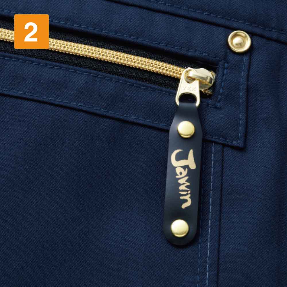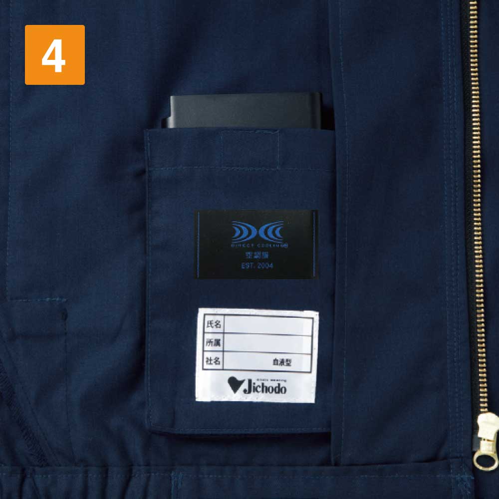 55500をベースにデザインされた小型ファン搭載のワークウエアです。腰の左右に取り付けられた小型ファンから、外気を服の中に循環させ、涼しさをアップしています。付属の小型ファンは軽く、洗濯の際は簡単に取り外しができます。暑い夏場のハードなワークシーンで、熱中症の予防の対策にオススメの一着となっています。作業の際によく使う大きめなアイテムも、すっぽり収納できるポケットが付き、静電気防止対策の素材でデザインされた機能性にも優れたワークウエアです。