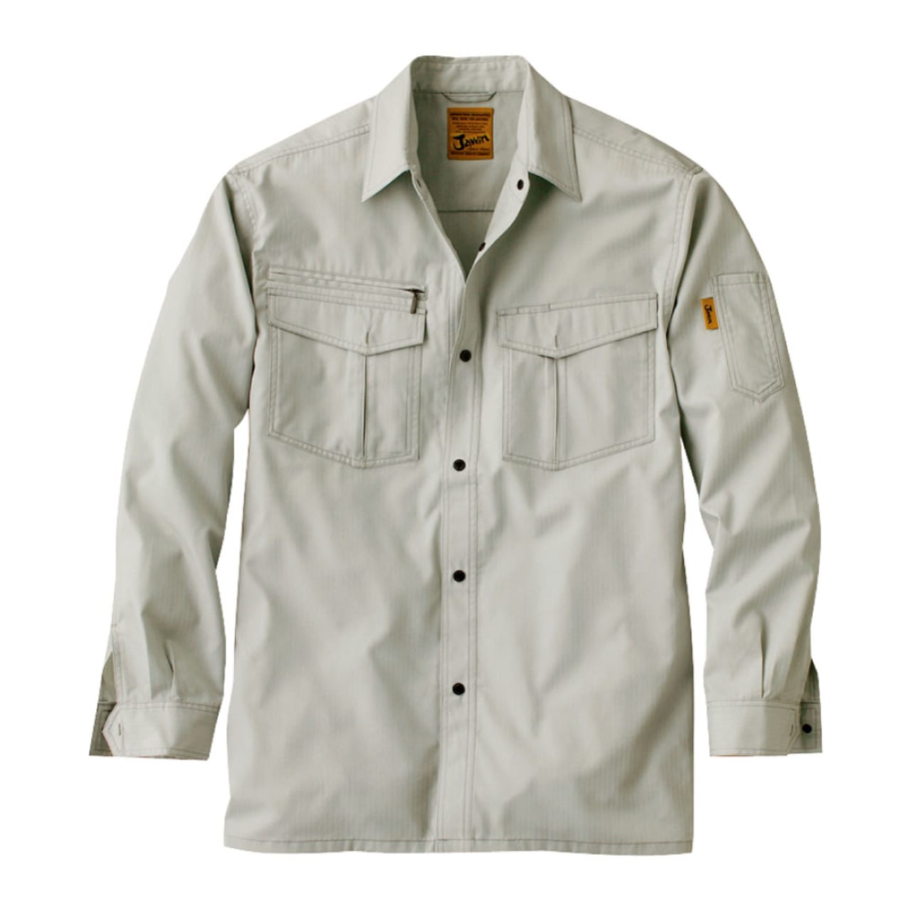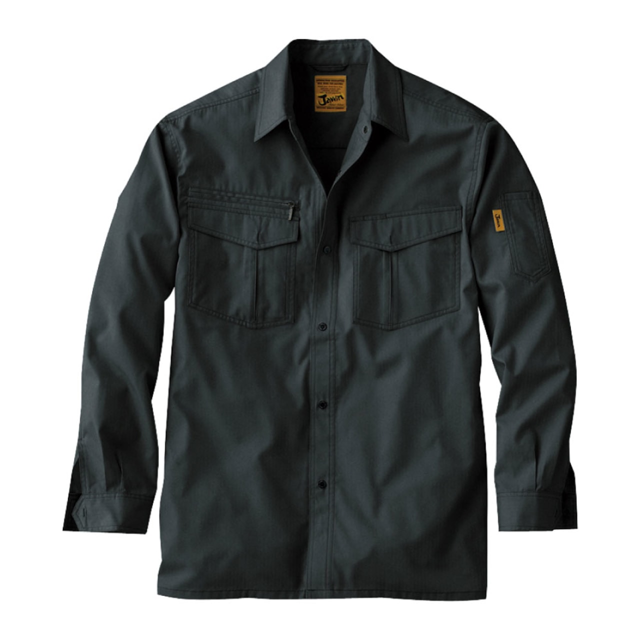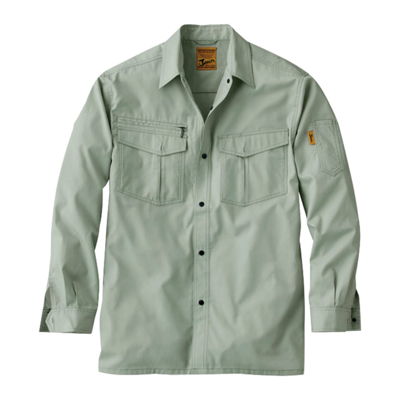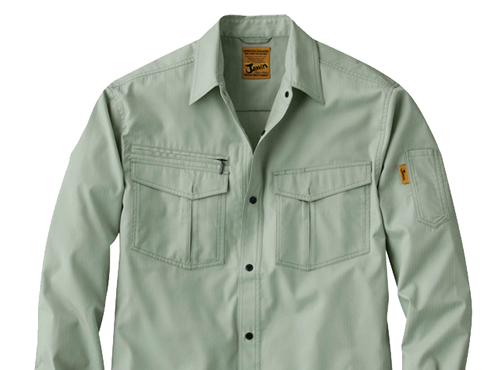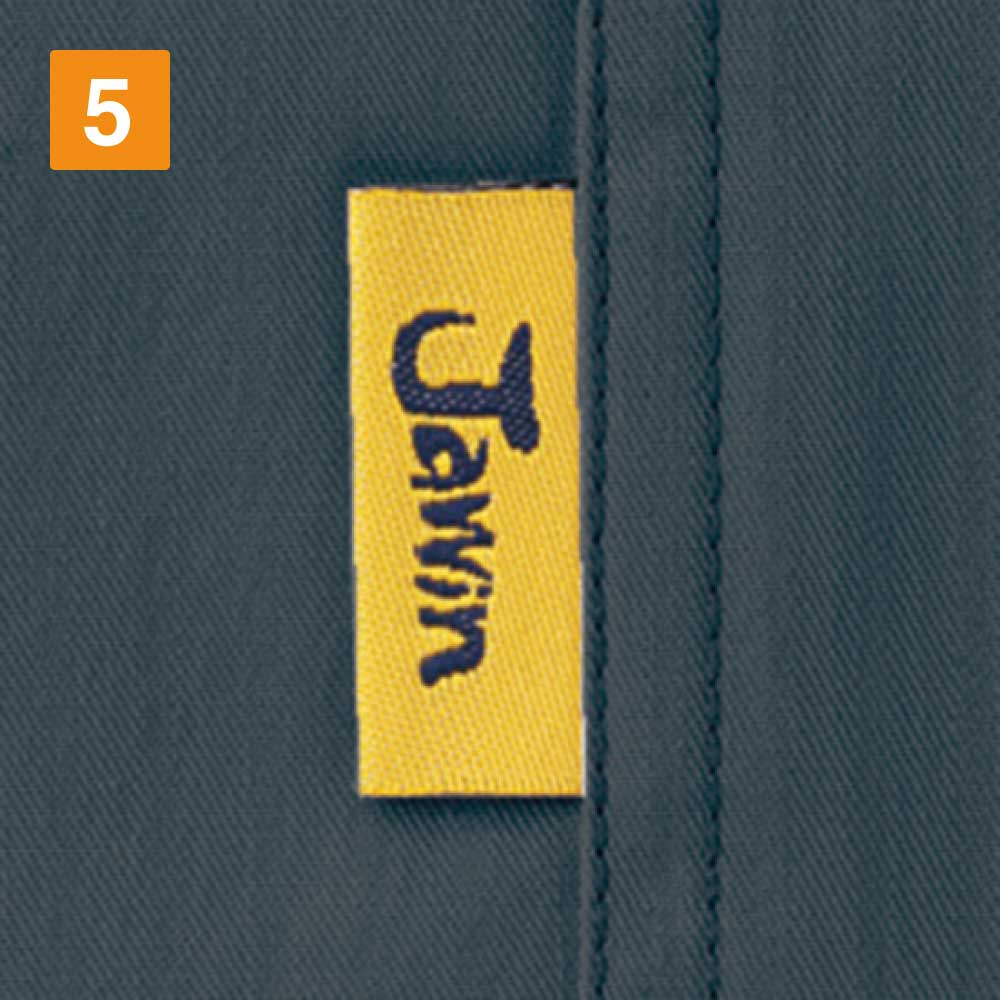 Jawinシリーズはハードな作業現場でも快適に過ごせる作業着です。デザイン性も高く、若いワーカーさんたちからも人気のあるシリーズです。黄色い生地に黒糸で刺繍されたブランドロゴタグが良い感じにアクセントを加え、現場での使用を考えて作成されました。実作業にも最適で、耐久性も機能性も抜群です。動きやすい素材となっているため、さまざまな現場で活躍します。同シリーズのワンタックカーゴパンツと合わせて、上下での着用も可能です。