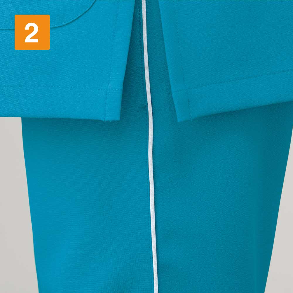側面のパイピングがスポーティーな印象を与えてくれます。MZ-0092男女兼用スクラブ上着と同企画、同素材のスクラブパンツです。カラー展開が豊富でコスパが良い人気のアイテム。