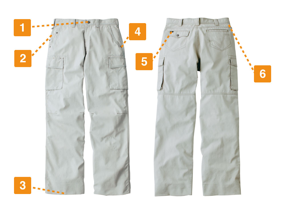 コスト面や安定性などを考慮し、ポリエステル系の素材を混合したワークウェアも多いですが、51100シリーズは綿を贅沢に100%使用!汚れやすいワークウェアは洗濯を繰り返し行うこともあるため、綿の丈夫さはワークウェアにぴったり。長時間穿いていてもストレスを感じないソフトな肌ざわりで、多くのワーカーを魅了します。ドビーのデニム生地のような織りは、デザイン性もさることながら吸水性やシワになりにくいといったメリットも多く、その点もワークウェアに適しています。そのため、デザイン・機能性どちらも求める方におすすめの1本と言えます。
