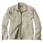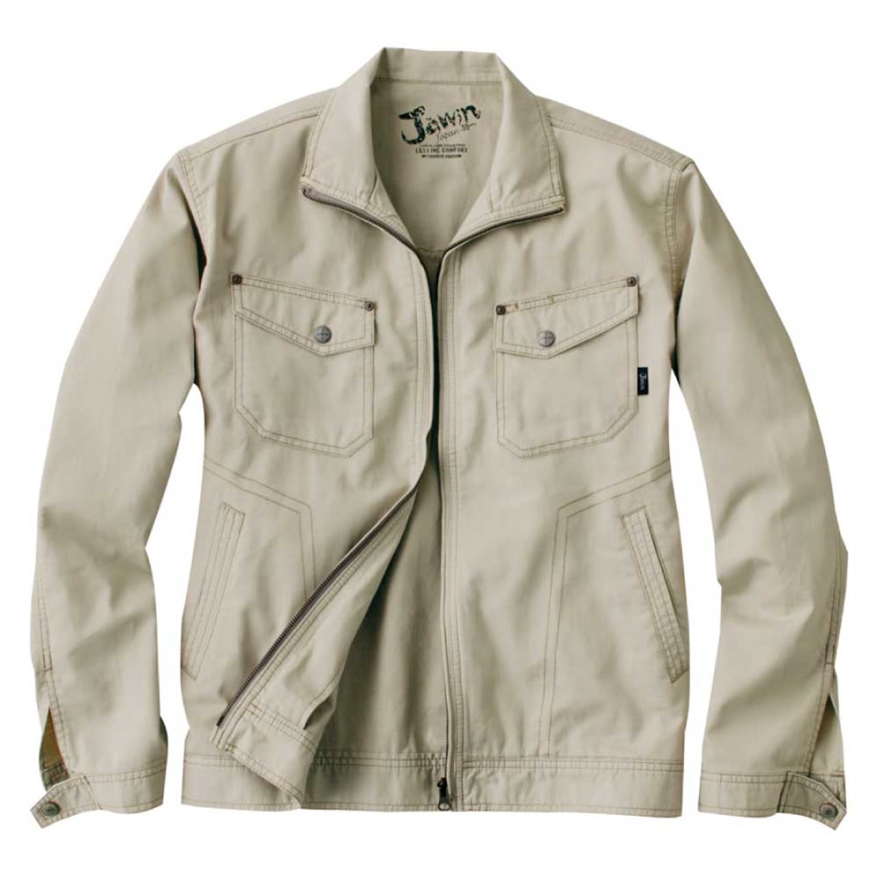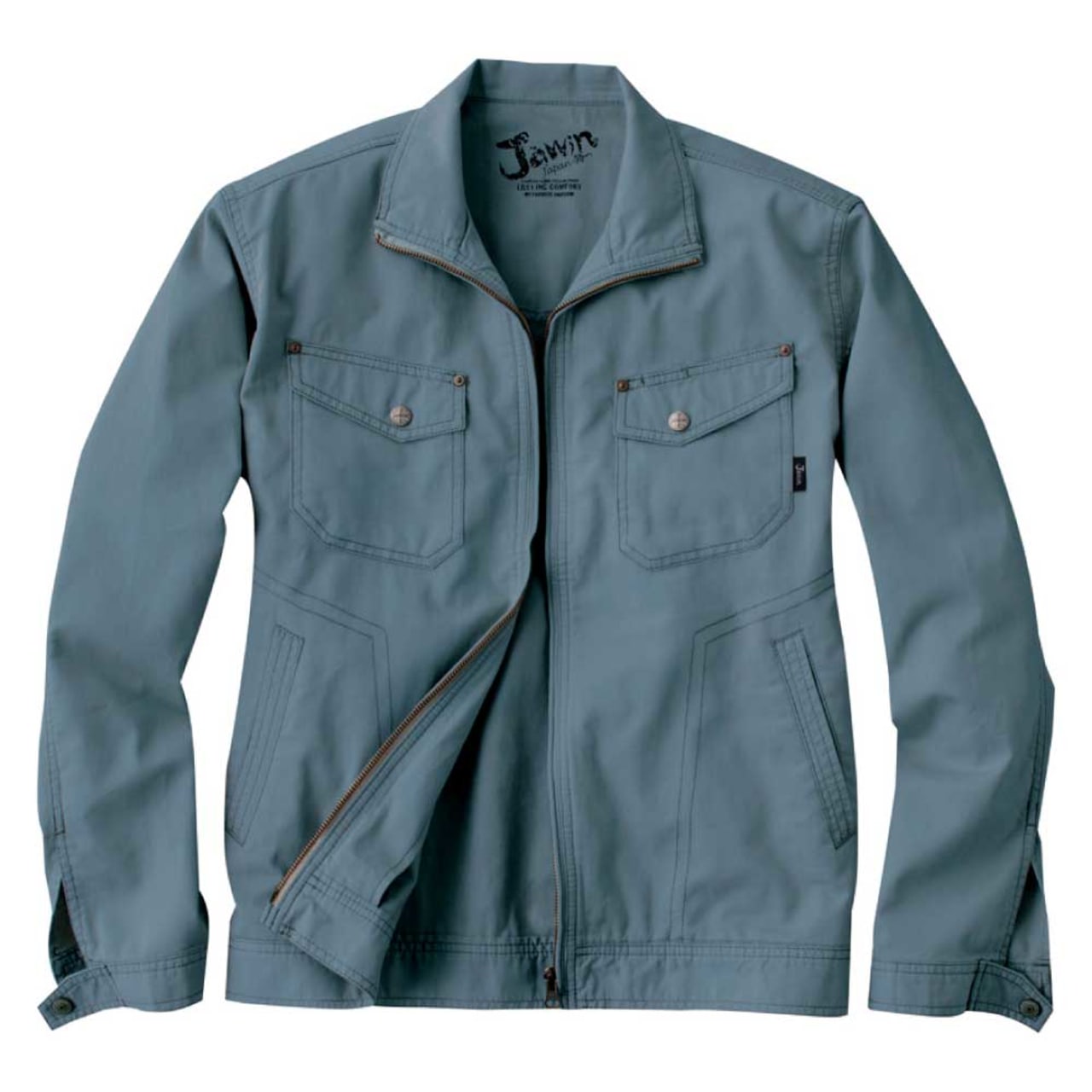 シンプルながらも優れたデザイン性が魅力の自重堂の春夏使用の長袖ジャンパーです。ブラウン、アイボリー、シルバー、ミストブルーといったカラー展開で、それぞれのカラーごとに着用時の印象が変わるため、現場に合わせて選ぶこともできます。オリジナルデザインが施された胸元の金属ボタンは耐久性を兼ね備えた実用的な仕上がりです。ジャンパーの生地は綿100%のドビー素材が使われており、さらりとした軽やかな着心地が魅力です。