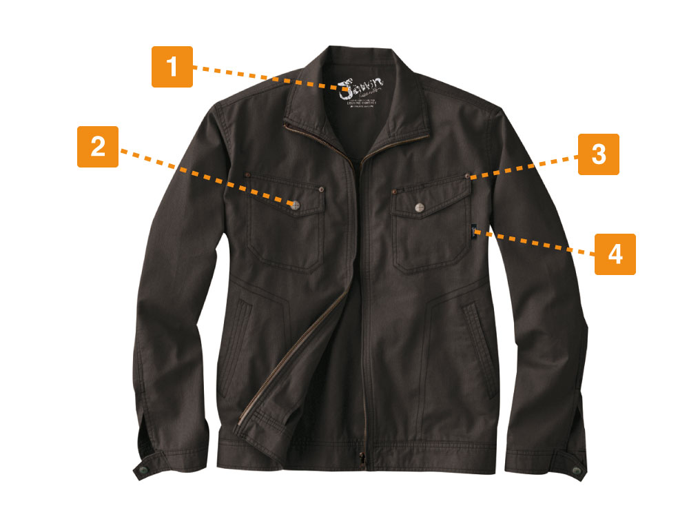着る人の個性を引き出すマルチなデザインが特徴の自重堂の長袖ジャンパー。シンプルなデザインながらも、豊富なポケットやさりげないワンポイントロゴのおかげで、作業着として最適な一着となっています。カラーはシックなダークカラーから、爽やかな印象を与えるライトカラーまでカバーした4色を展開。豊富なサイズ展開で着る人を選びません。綿100%のドビー素材を生地に採用し、さらりとした爽快感のある着心地を実現した、春夏向けの軽やかな一着です。