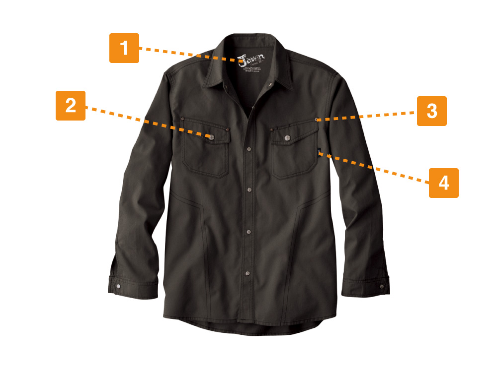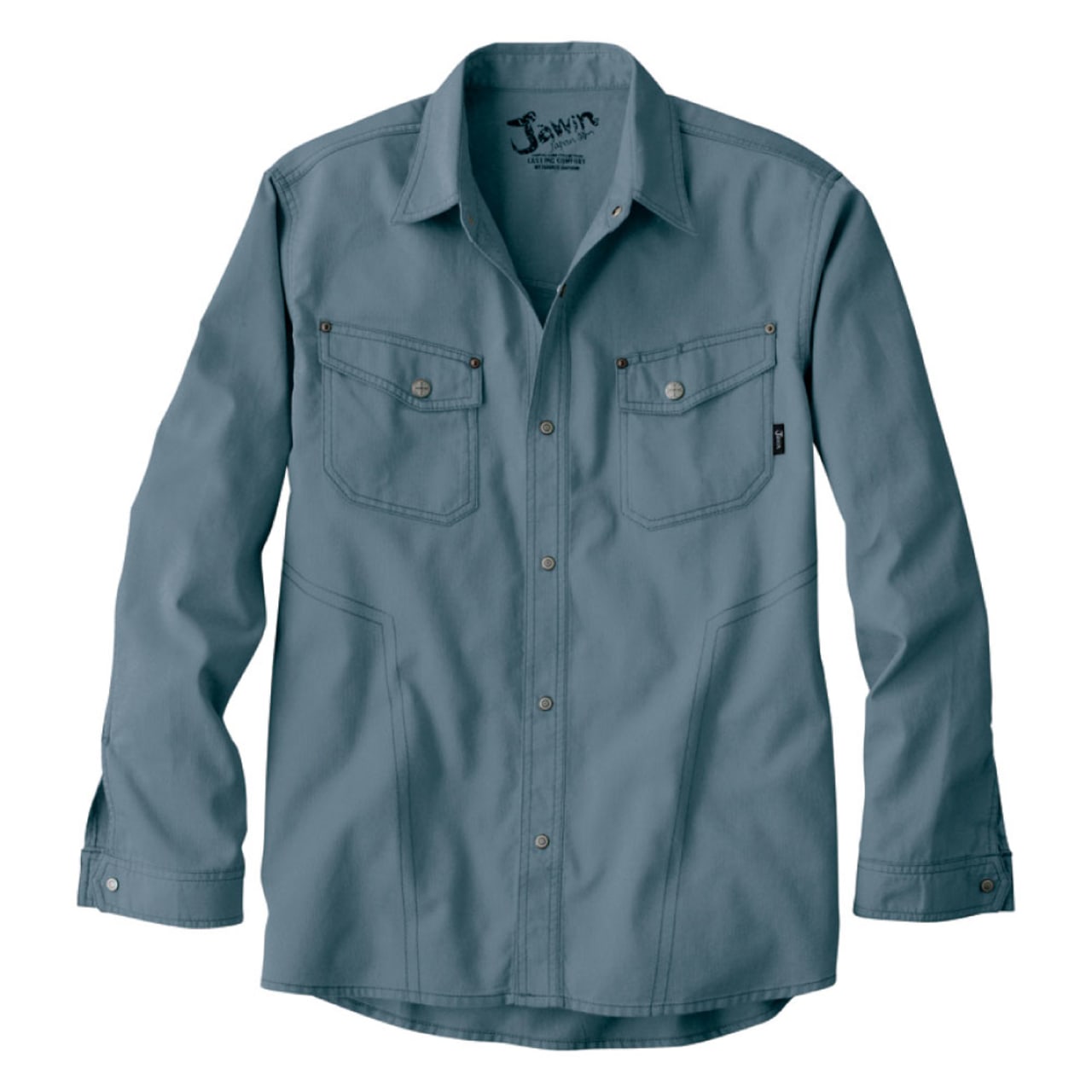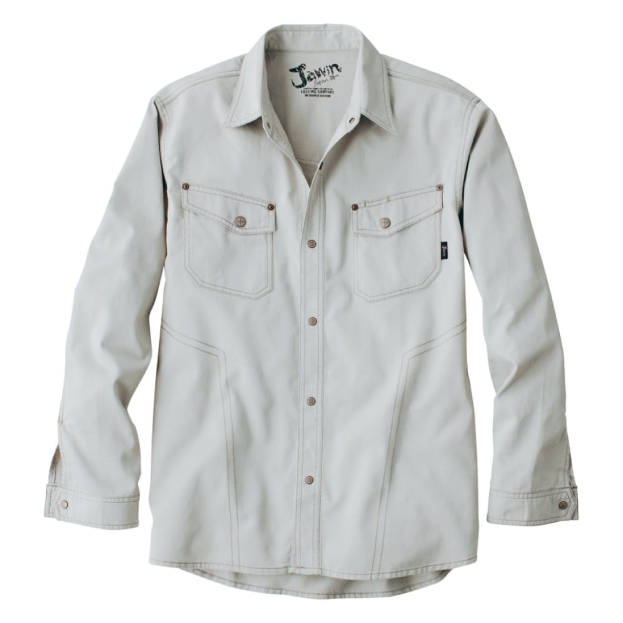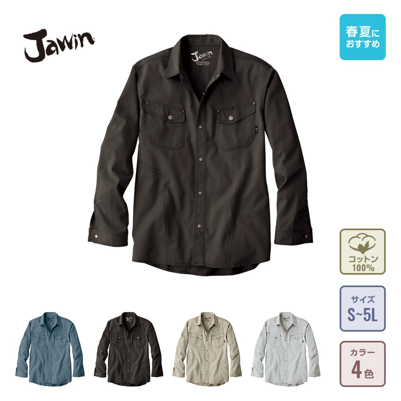 軽やかで柔らかい肌触りの綿100%のドビー素材を使用している自重堂の長袖シャツ。シンプルなデザインながらも、オリジナルデザインボタンやリベットを採用。実用性も兼ね備えた仕上がりとなっています。カラーはシックな印象を与えるブラウン、清潔感あふれるシルバー、クールで爽やかなミストブルー、温かみを感じるアイボリーの4色展開です。それぞれ印象が異なるため、現場によって選びやすいことが特徴です。着丈が比較的長めに作られているので、インナーとしてもアウターとしても着られる仕様になっています。