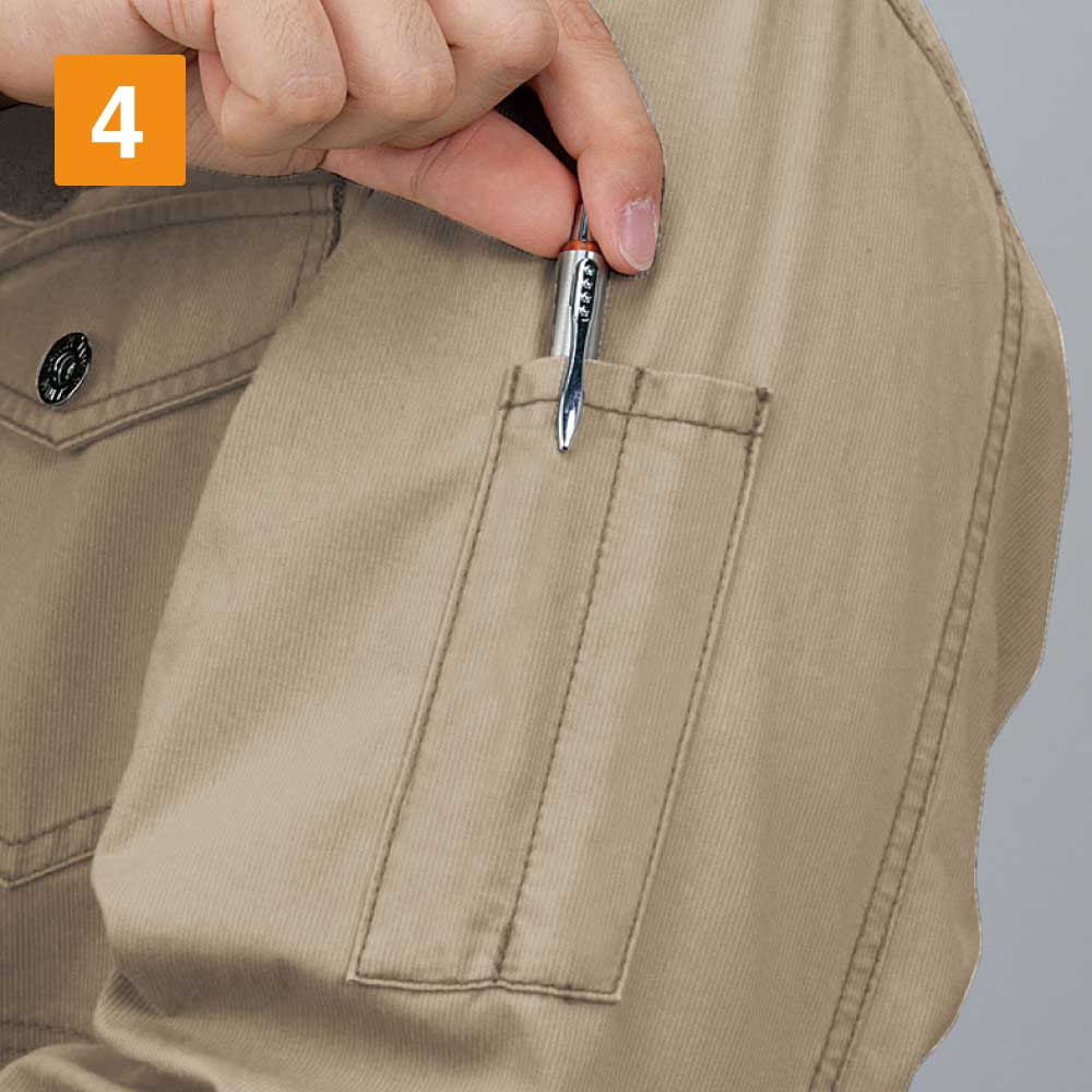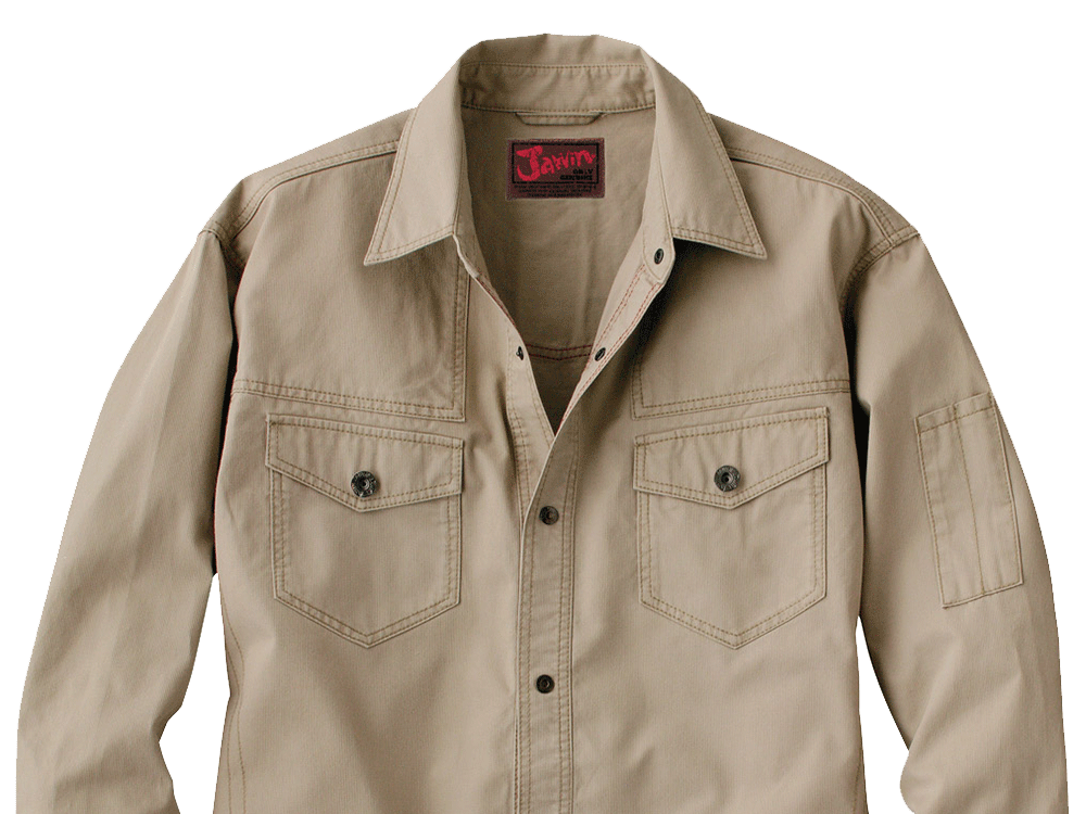 長袖タイプとなっているため、秋冬を通じて幅広い現場で着られる作業着です。素材には綿100%のブロークンツイルを採用し、着心地の良さと耐久性を両立しました。4色カラーと豊富な幅広いサイズ展開で、世代を問わずに着られることもポイントです。オリジナルデザインボタンや、内側の飾りステッチなど、細部にもこだわったシンプルながらも実用性の高い一着となります。同シリーズのジャンパーやノータックカーゴパンツと併せて着用いただくことで、作業着としてより快適に使用することができます。