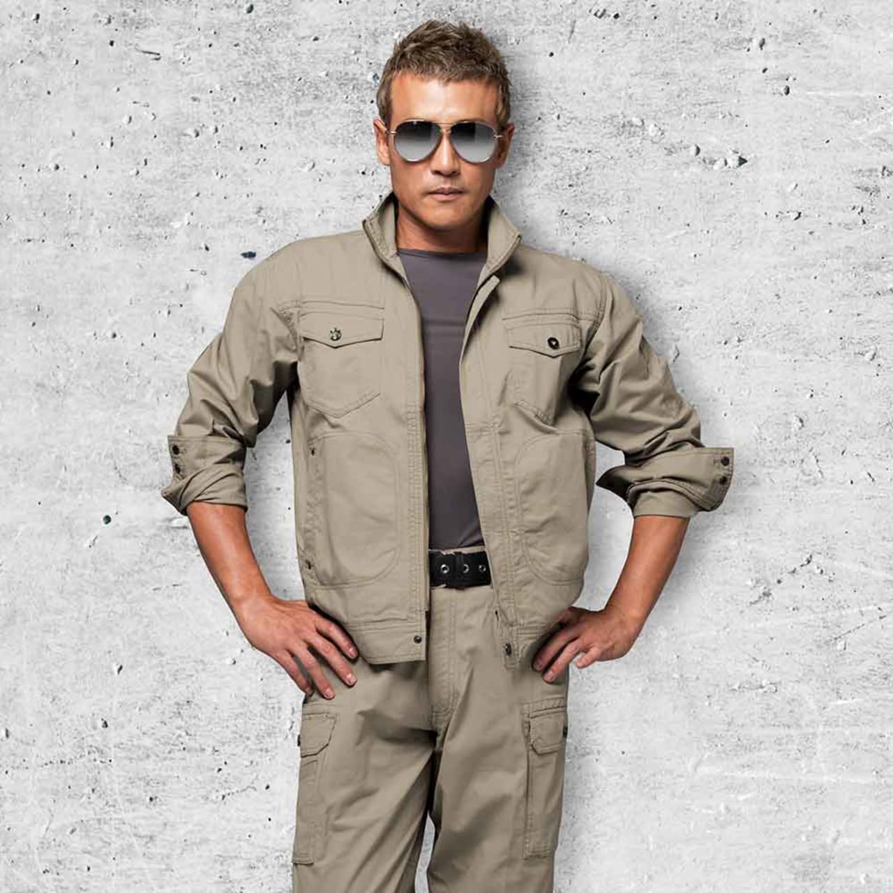 55000シリーズの働くワークマンの味方、ノータックカーゴパンツです。伸びの少ないタフな生地のピケ素材を使い、ウエストをスリムに見せるノータック仕様でつくられており、タフでアクティブな動きもしっかりサポートします。ウエストの手の届きやすい位置には、工具や道具などよく使う作業用の荷物を簡単に着脱できるカラビナループ付きで、作業時の様々なシーンで使うことができます。カーゴパンツ特徴の一つ、大型ポケットが両脚に施されており、収納機能も充実した、完成度の高いカーゴパンツに仕上がりました。