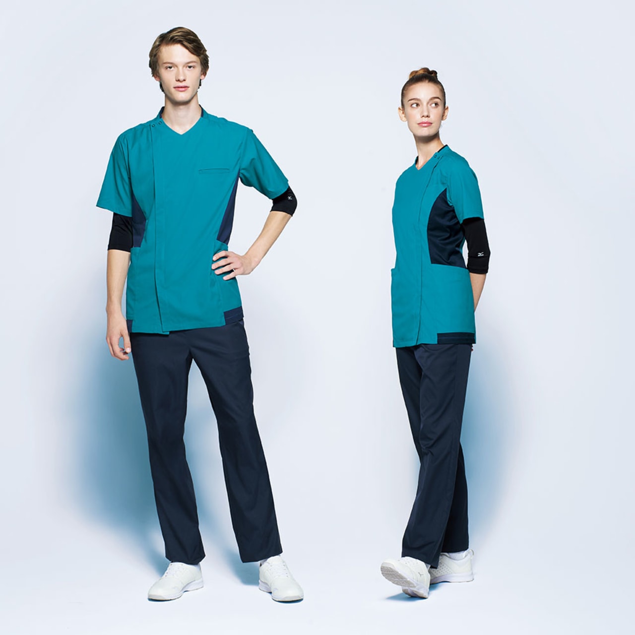 「MIZUNO QUICKDRY PLUS」のレディース用アンダーウエア。通常のアンダーウエアに比べ、吸汗速乾性に優れ、汗を素早く吸収・拡散、ウエア内を快適な状態に保ちます。どんな色のスクラブにも合わせられるよう、定番カラーホワイト・ネイビー・ブラックの全3色。左袖には「MIZUNO」のロゴもプリントされていて、MIZUNOブランドを主張しています。