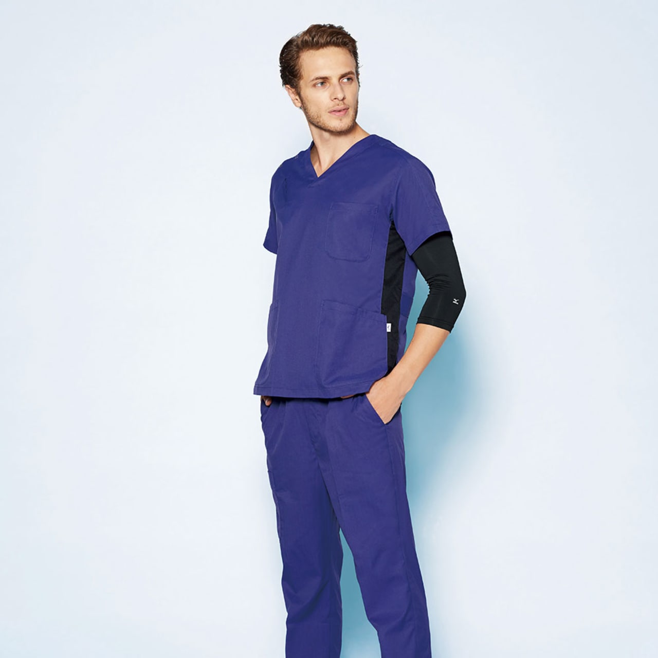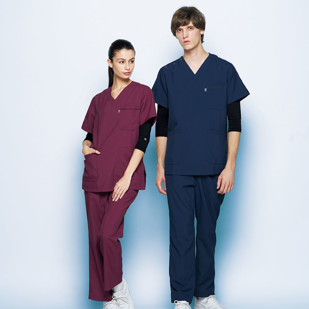 「MIZUNO QUICKDRY PLUS」のメンズ用アンダーウエア。通常のアンダーウエアに比べ、吸汗速乾性に優れ、汗を素早く吸収・拡散、ウエア内を快適な状態に保ちます。どんな色のスクラブにも合わせられるよう、定番カラーホワイト・ネイビー・ブラックの全3色。左袖には「MIZUNO」のロゴもプリントされていて、MIZUNOブランドを主張しています。