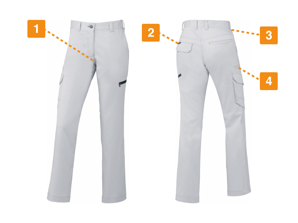 「Z-DRAGON」のレディース用カーゴパンツは、綿とポリエステルの良いとこどり素材バンジーテックサマーツイルを採用しています。綿の優しい肌ざわりが履き心地良く、ポリエステルの伸縮力を活かして、ストレッチ性も高いため、長時間作業しても疲れにくく動きやすいのが特徴です。通気性や吸水性にも優れているため、蒸し暑い日もサラッとした着心地。更には抗菌・消臭効果のあるテープも付いているため、夏場の作業でも安心です。機能性も十分で、両脇、お尻側のポケットの他、ファスナー付のポケットとマルチポケットも搭載されています。カラーは、ネービー、シルバー、アーミーグリーン、スチールグレーの4色ですが、どれも裏地付きなので、薄めのカラーでも透けにくい仕様です。