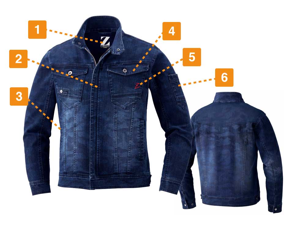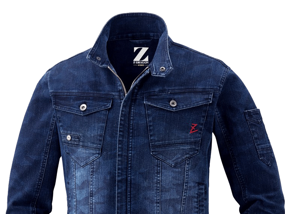 綿・ポリエステル混紡でそれぞれの利点を盛り込んだストレッチデニム素材を使用したストレッチジャンパー。カジュアルなデニムは毎日の仕事着として、気軽に使うことができ、綿のやわらかなフィット感とハードな作業にも対応できる伸縮性の良さはストレスなく着用できます。汚れやほこりを気にすることなく、長期的に使うことができる耐久性の良さも魅力です。野帳対応ポケットや二重ポケットと収納力もしっかりとあり、ワーカーをサポートする機能面も文句なし。サイズも豊富で、働く人をキーワードにものづくりにこだわる自重堂ならではのクオリティーに仕上がっています。