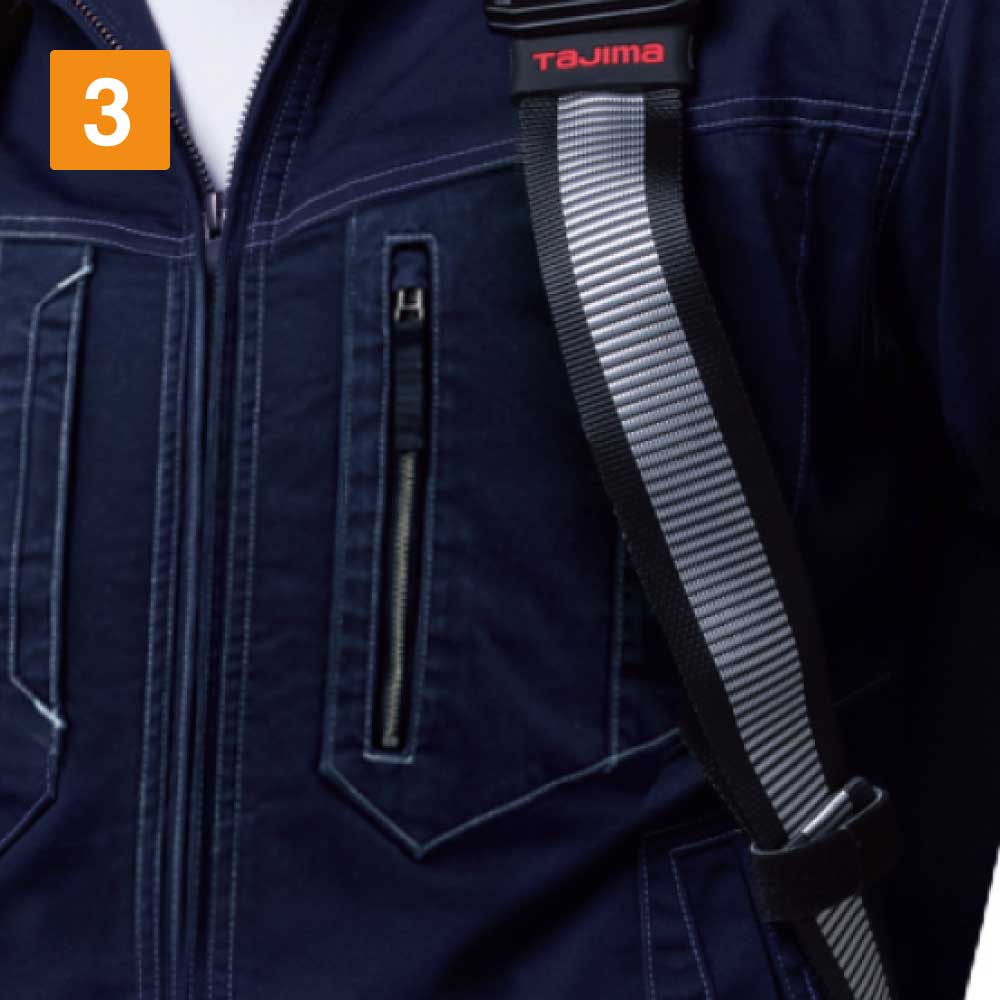 胸ポケットがベルトに隠れにくいデザイン仕様