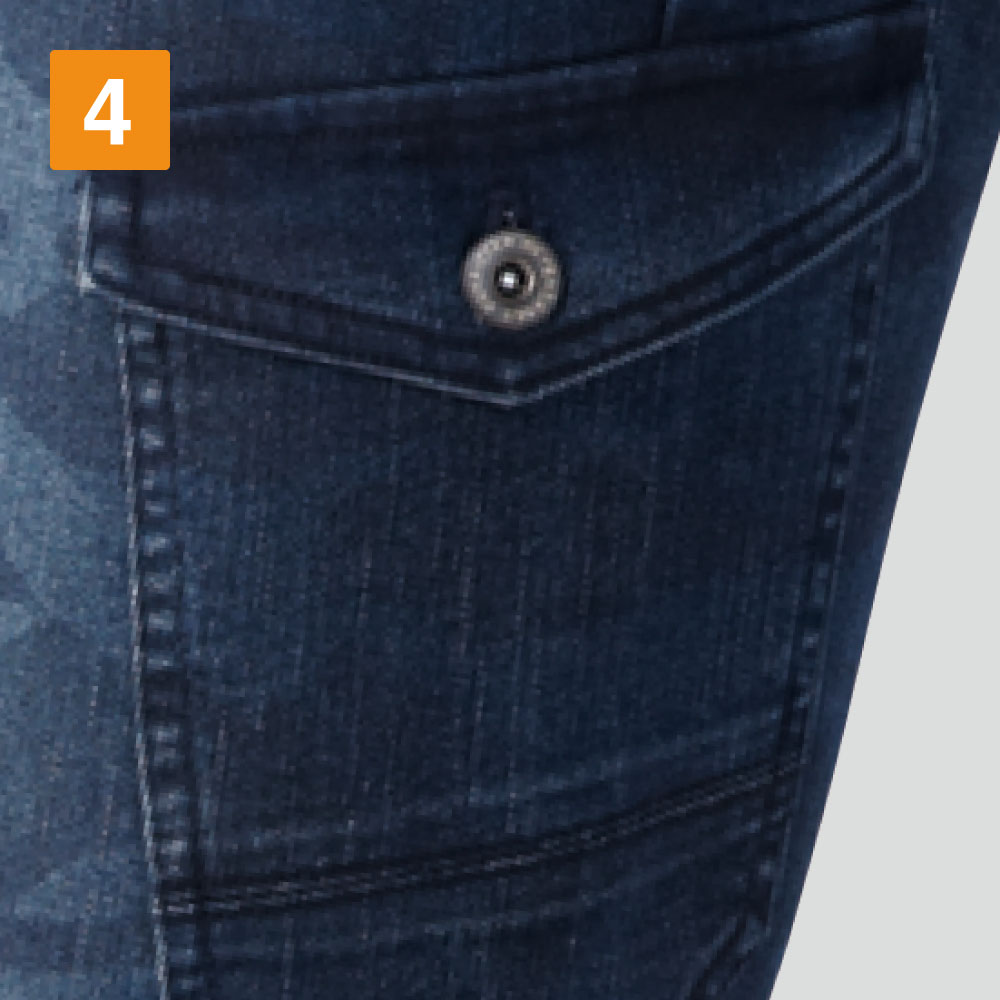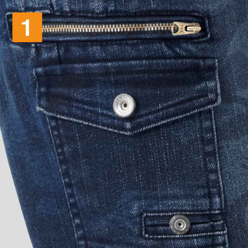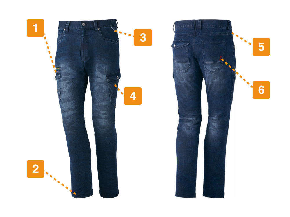 しなやかにフィットする作りのストレッチノータックカーゴパンツは、もたつき感がなく作業のしやすさが魅力です。サイズは73cm~112cmと幅広く、さまざまの体型の人に対応することが可能。71600シリーズは、自重堂のなかでも若い人に受け入れられやすいハイブリッドモデルとなっており、市原隼人さんをモデルに起用するなど従来商品とは全く違うイメージが特徴です。カラーリングも、インディゴ、インディゴカモフラ、ブラックカモフラと珍しいカラーバリエーションの3色で、現場での差別化にも一役買ってくれそうな1着となっています。