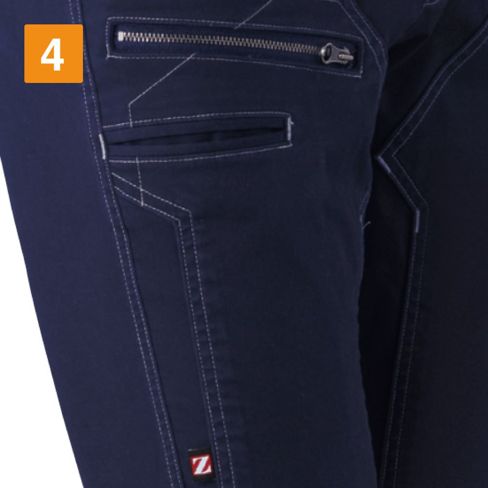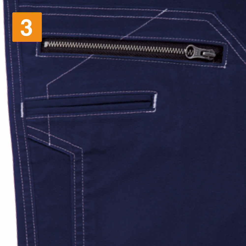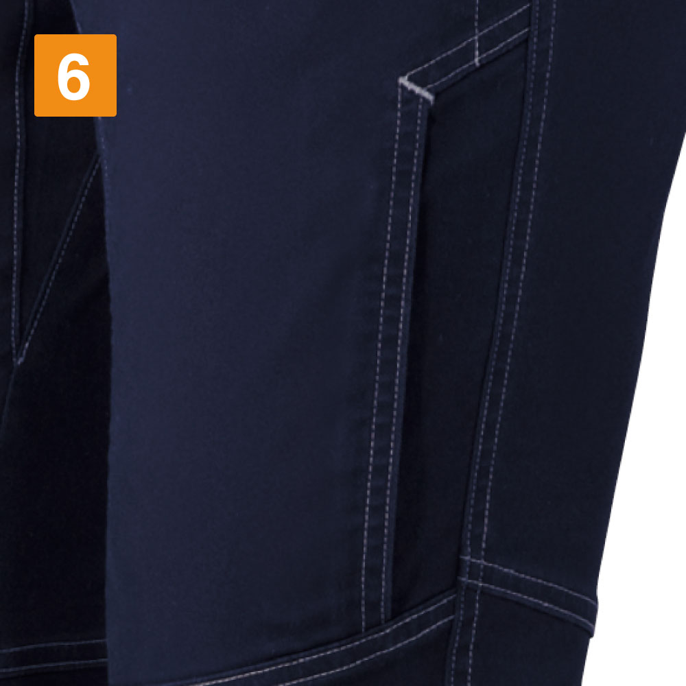 このノータックカーゴパンツは、収納性に優れている点が魅力の一つです。ワーカーにとって、作業の際に道具を置いたり、取りに行くという動作一つも手間に感じてしまいますが、このワークパンツはそんな手間さえも省きます。大きなポケットや、カラビナループなど作業で使う道具もしっかり収納し、作業をサポートします。また、伸縮性・ストレッチ性にも優れ、綿を多く含む生地でつくられたカーゴパンツは、柔らかく、ソフトな履き心地を実現しました。スリムに見せながらも、ハードな動きをしっかりサポートするストレッチノータックカーゴパンツです。