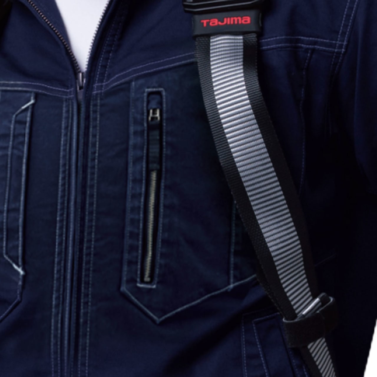 ストレッチ長袖ジャンパーは、綿とポリエステルを配合したストレッチへリンボン生地を使用。高所作業に用いるフルハーネスベルトにも対応しており、実用性も十分です。様々な作業着に採用されるストレッチへリンボン生地は、洗濯、乾燥がしやすい使い勝手の良さが特徴です。汎用性のあるワークウェアとなっており、春夏を通じて幅広い現場でご使用いただけます。