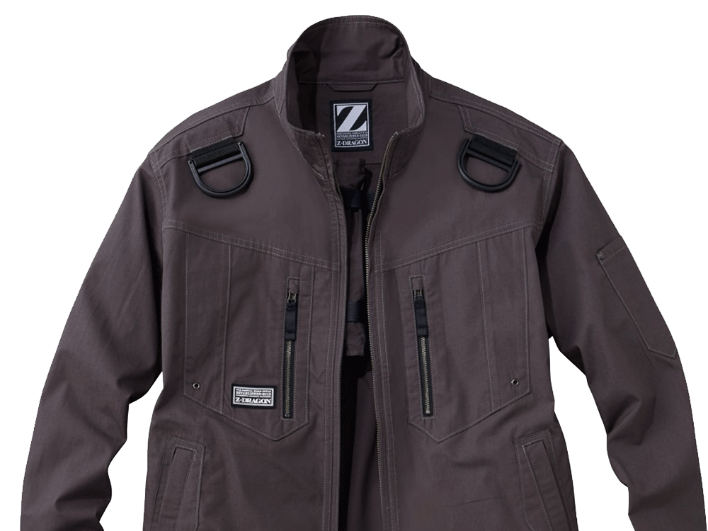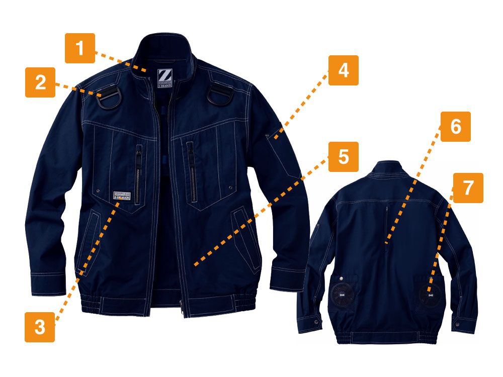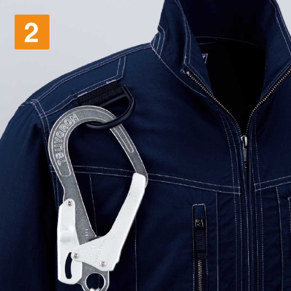 綿生地を使い、自然でソフトな着心地でありながら、タフで丈夫な素材でつくられた75700ベースデザインのハーネス着用専用モデルのワーキングウエアです。耐久性に優れた空調服で、安全帯フックを掛けるDカンや、ランヤード取付け口、ファン脱落防止メッシュなど、ハーネス関連の機能がウエアに施されています。これらの機能があることで、高所での作業を安全にしっかりサポートします。カラーは、ネービー、シルバー、ブラック、スチールグレーのシックな4色を展開しています。