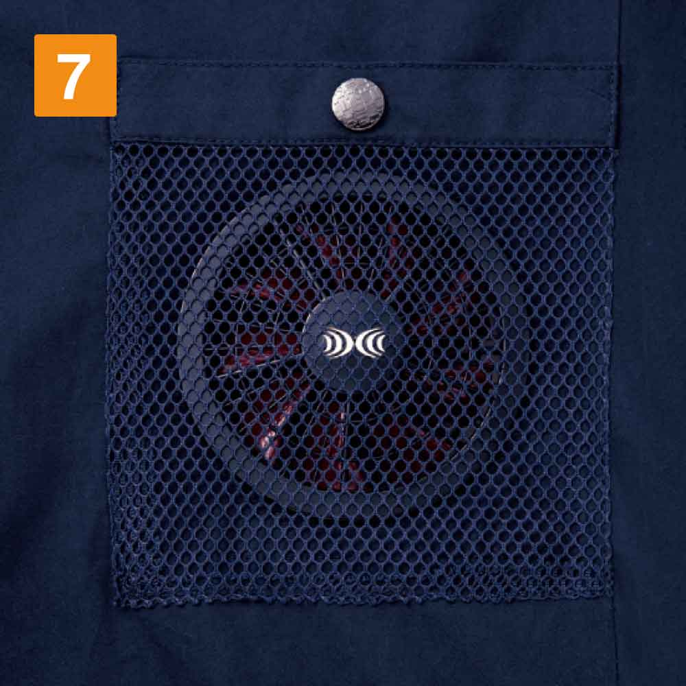新感覚の涼しさを実現した、小型ファン付き空調服です。腰のあたりにある、2基の小型ファンから、外気を服内に循環させ、涼しさをアップします。さらに襟元の調整ヒモで、ウエアと首元の間に隙間をつくり、流れる風を増大させるので、より涼しく快適な着心地で過ごせます。フルハーネス対応モデルのため、高所での作業中の暑さを緩和することが可能です。小型ファンは、ウエアからの取り外しも簡単で、洗濯をする際は手間をかけずに着脱することができます。春夏専用素材でつくられているので、暑い夏場の熱中症予防の対策として、おすすめのワーキングウエアです。