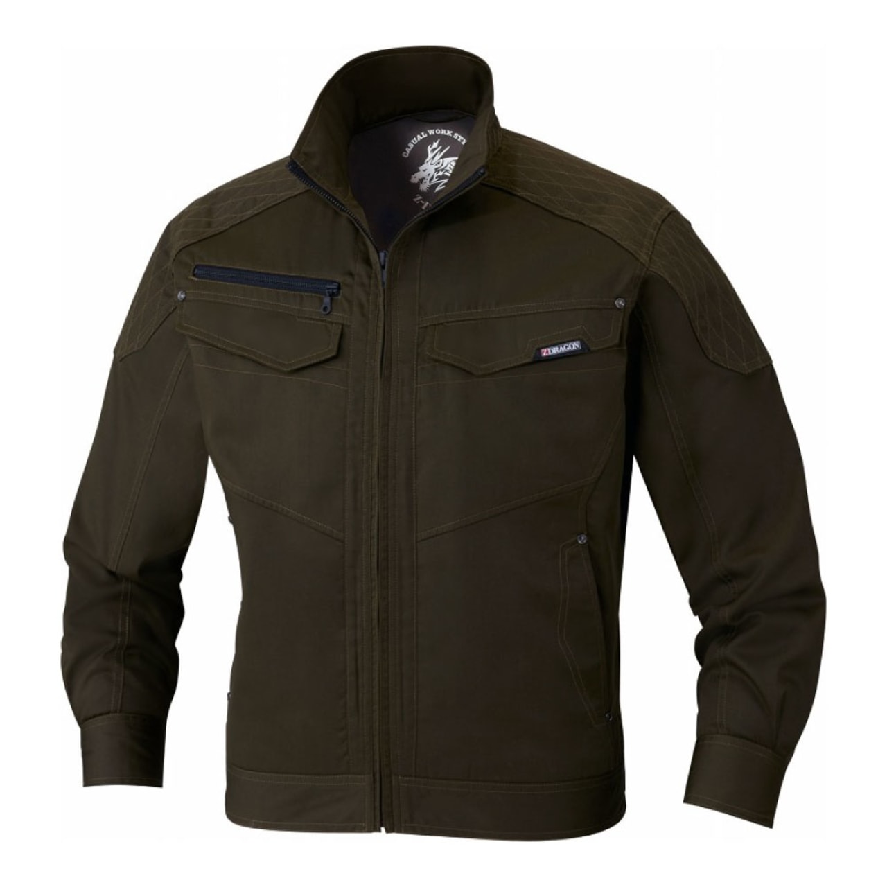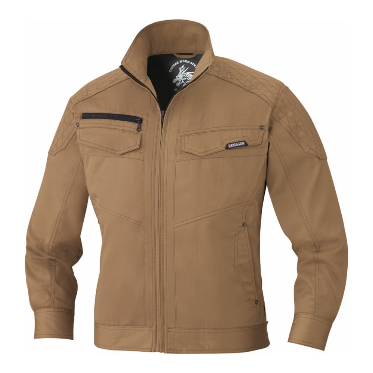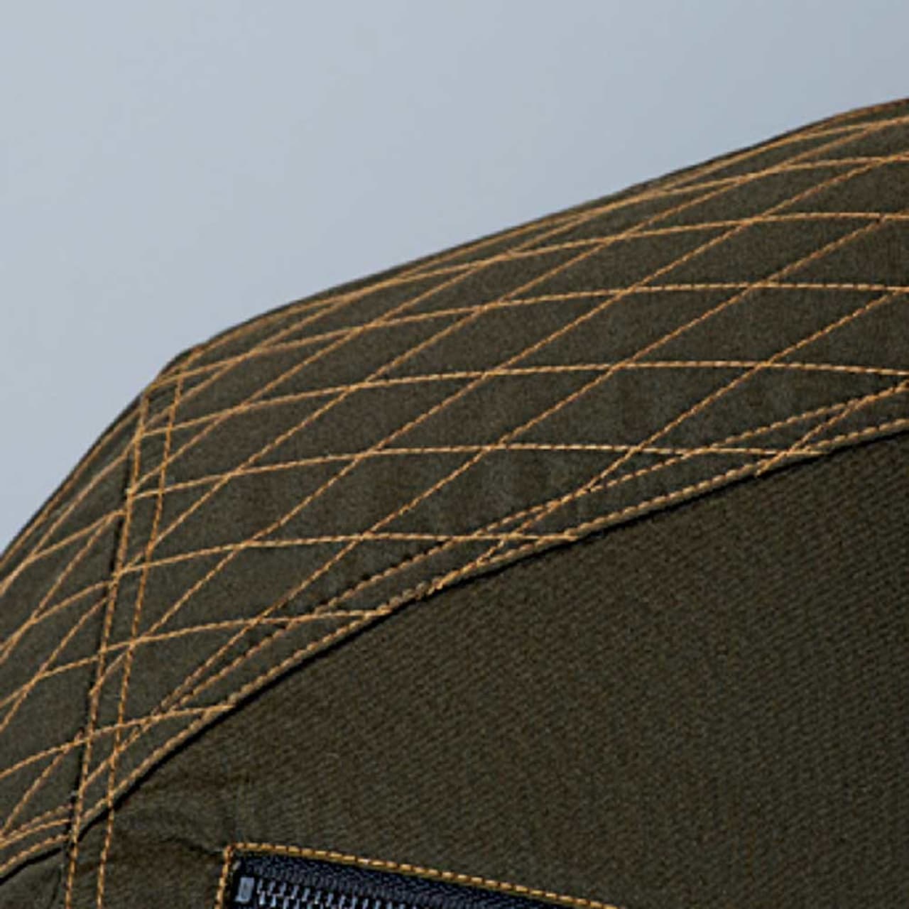 オリーブ、ネービー、シルバー、シックブラック、キャメルといった利便性の高い落ち着いたカラー展開が特徴の自重堂の長袖ジャンパー。豊富なサイズ展開で、幅広い世代で着用できるワークウエアです。生地には、丈夫でソフトな肌触りが魅力のサマーツイル素材を使用。内ポケットや携帯電話収納ポケットなど、ツールの傾向に便利な設計で、さまざまな現場で活躍すること間違いなしです。背中ベンチレーションや脇下部分がメッシュになっており、快適な着心地を実現。肩口の刺し子がアクセントになった、スマートな着こなしができるワークウエアです。