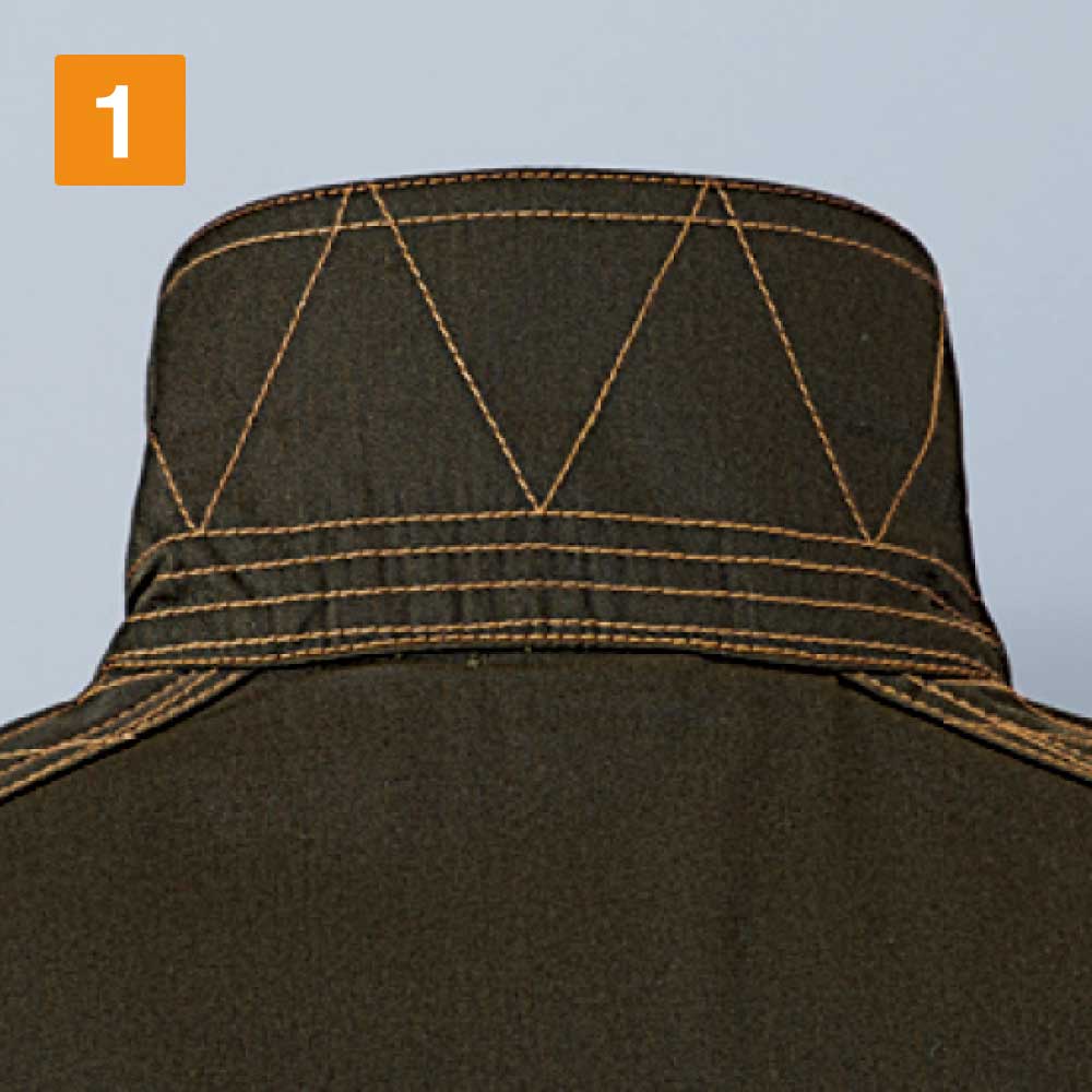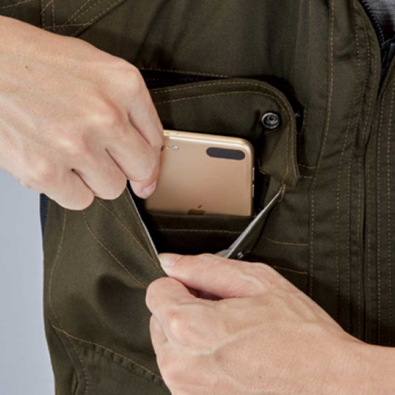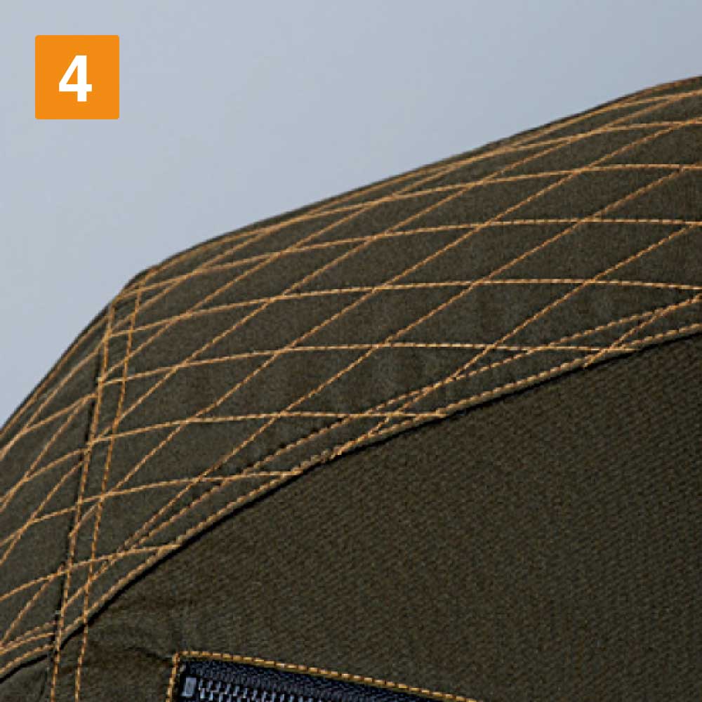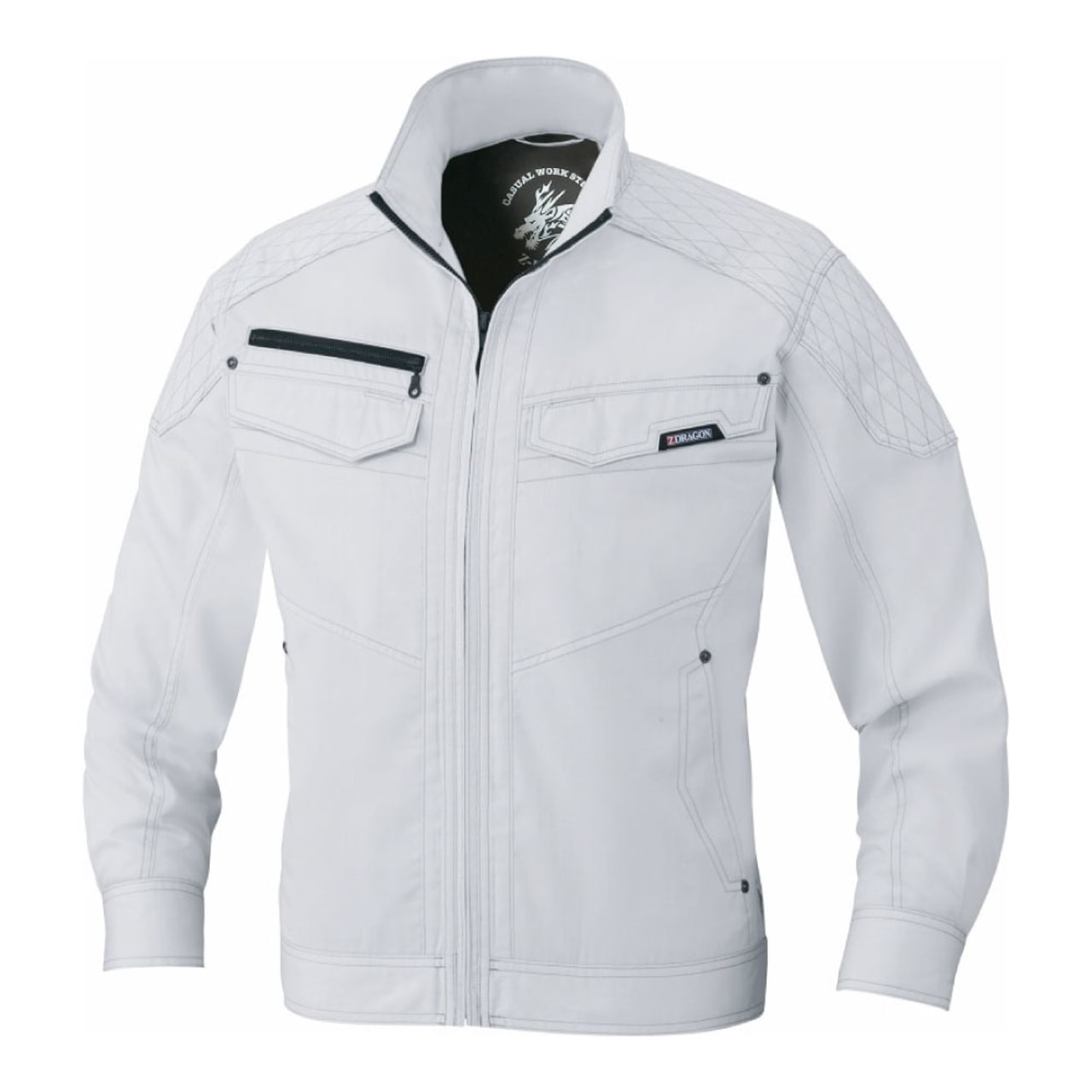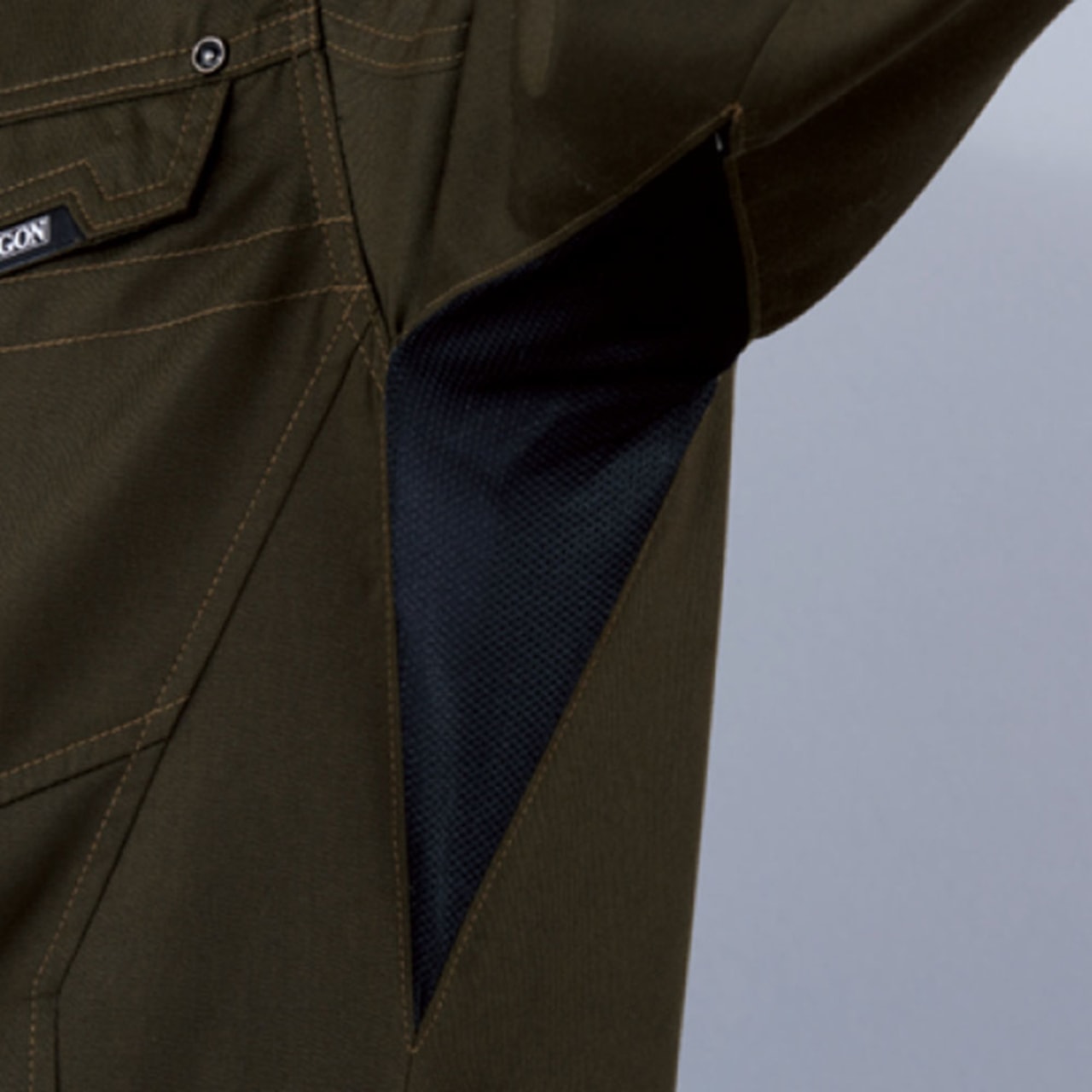 快適で軽い着心地ながらも、ハードな現場にも対応した耐久性でワーカーをアシストする自重堂の長袖ジャンパー。脇下や背中ベンチレーションがメッシュになっているので、長時間着用しても熱がこもらない春夏シーズンに最適のアウターです。豊富なポケットは大容量で、野帳にも対応。帯電防止素材を使用しているので、デリケートな現場にもピッタリ。肩口の刺し子が全体のデザインのアクセントになっており、スマートなワークスタイルを実現。デザイン性と機能性を兼ね備えた、ワーカー思いの一着に仕上がっています。