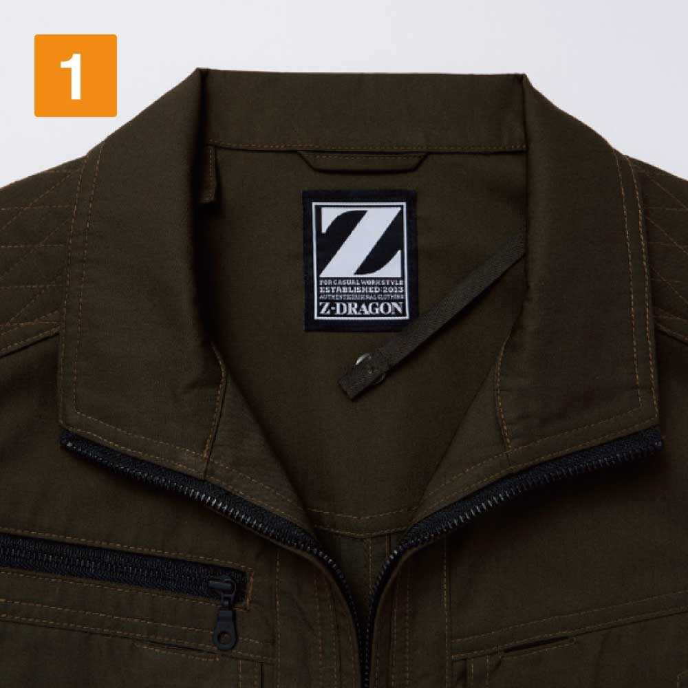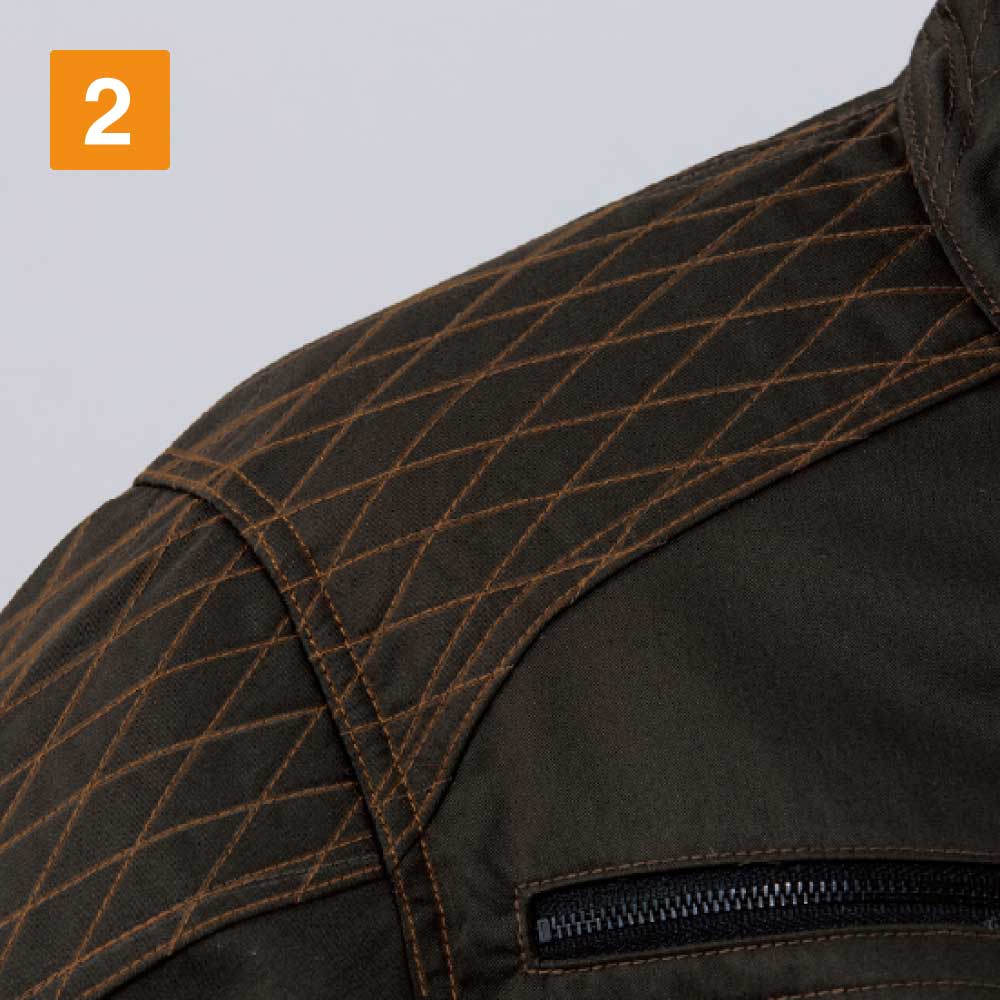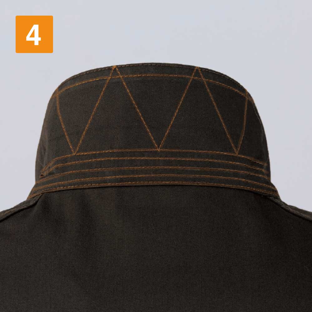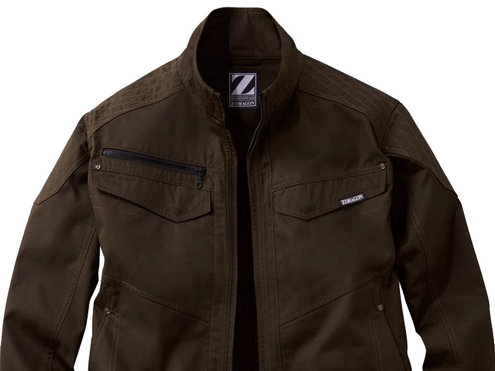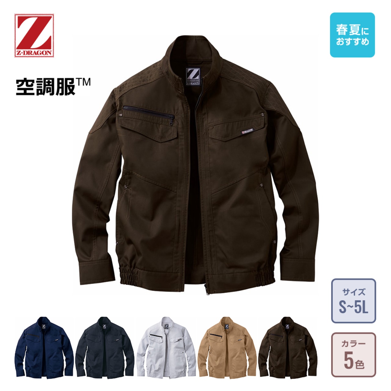 自重堂のブランドZ-DRAGONシリーズをベースに設計された空調服。暑い時期の外仕事に最適な、抜群の通気性を誇ります。生地はソフトで丈夫なサマーツイル素材を使用。カラーはオリーブ、ネービー、シルバー、シックブラック、キャメルの5色で、豊富なサイズ展開も嬉しい限りです。デザイン性にも優れていて、肩口の刺し子や、衿裏飾りステッチが全体のアクセントになっています。内側にはバッテリー専用のポケットがあり、長時間の着用でも安心です。ハードな現場で働くワーカーにイチオシの機能的な空調服です。