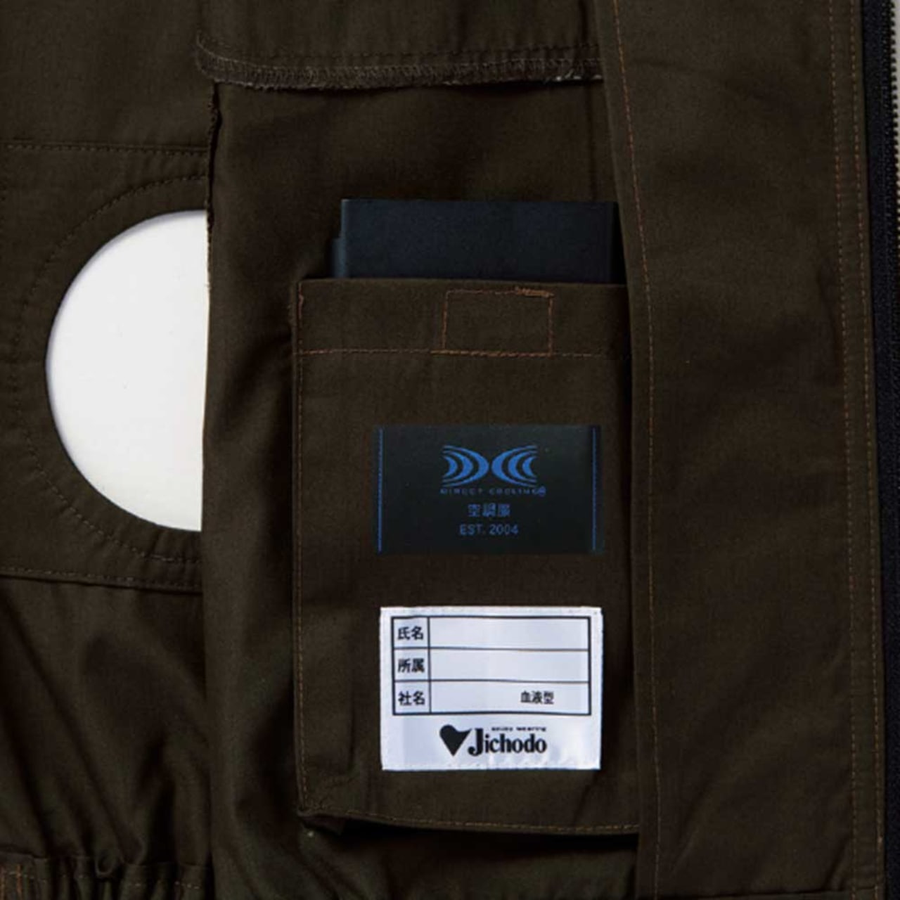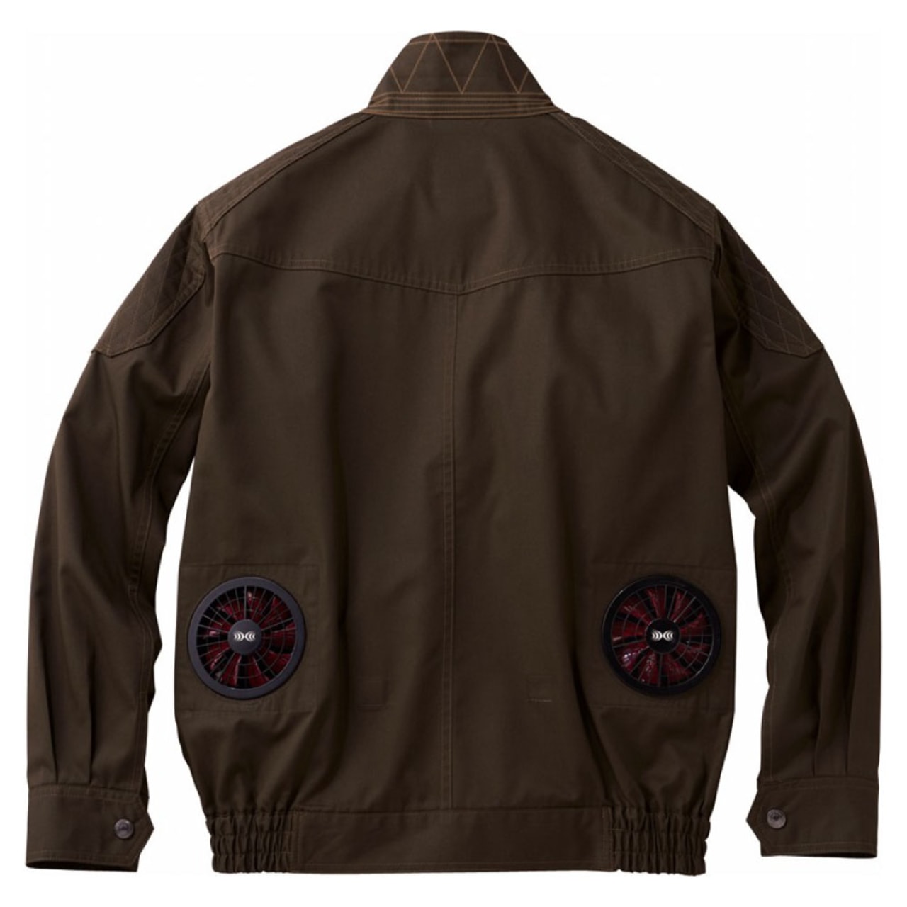 両サイドに付いたファンが、服の中に外気を送り、作業中でも涼しく快適に過ごせる自重堂の空調服。ソフトな肌触りとタフな着心地が特徴のサマーツイル生地を使用したブルゾンをベースに、機能的な空調服に仕上がっています。カラーは、オリーブ、ネービー、シルバー、シックブラック、キャメルの5色展開。肩口の刺し子が全体のアクセントになり、スマートな着こなしが可能です。サイズ展開もSから5Lまであるので、幅広い世代で着用できます。ポケットも大容量で野帳も収納できます。機能性とデザイン性に優れた、便利な空調服です。