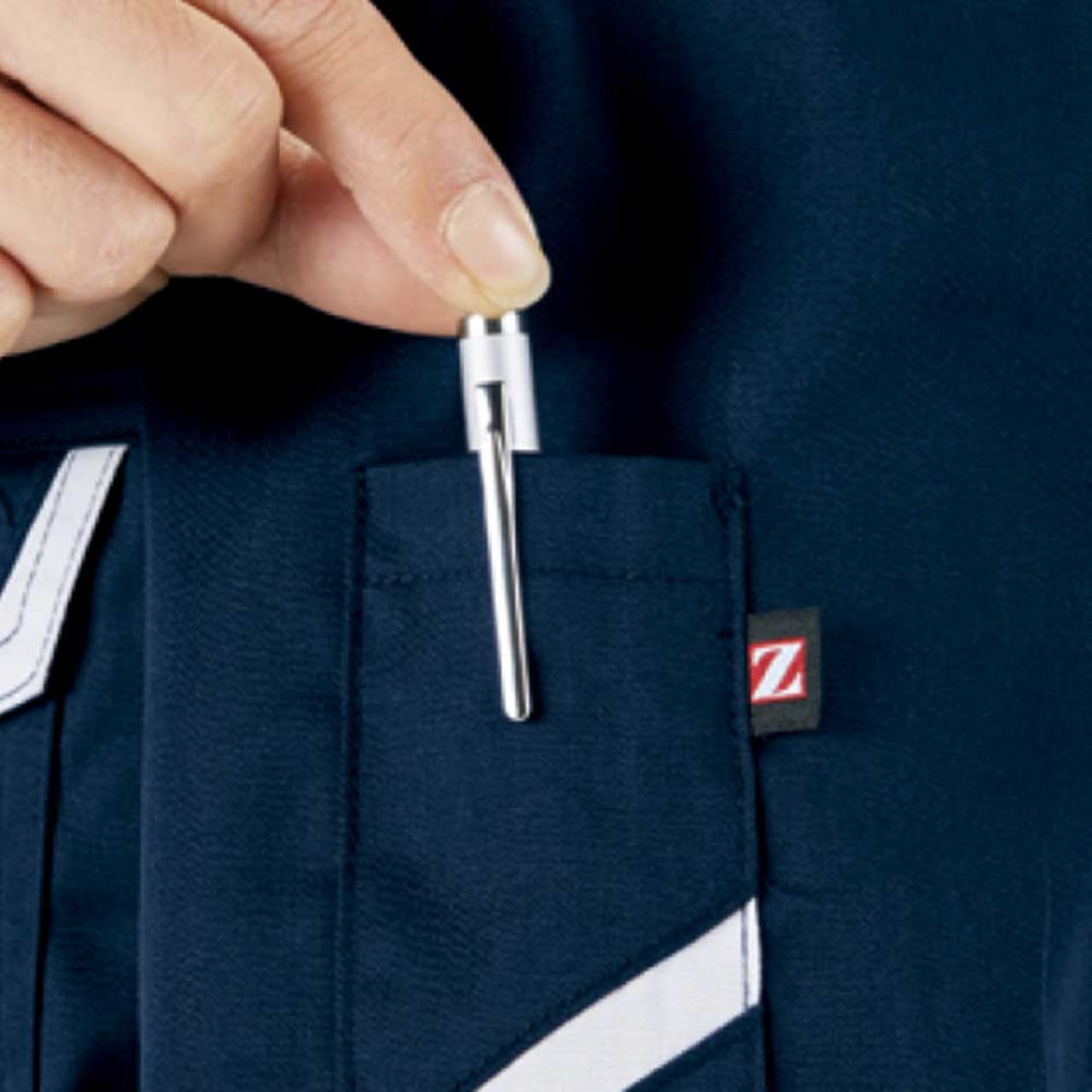自重堂の製品制電シリーズは、高度な制電機能を持つ作業着です。静電気に対して敏感な電気関係やガスを取り扱う現場でも安心して着用可能。綿とポリエステルを混紡させたサマーツイルを採用した生地だから、丈夫だけれど、軽くて動きやすく、暑い日でも爽やかに着こなしていただけます。大きめのポケットがたくさんついているのも魅力のひとつ。ファスナー付のポケットや二重ポケットもあるので、作業に必要な工具等も収納しておけます。カラーは5色で、サイズ展開も豊富なので社用のユニフォームにも向いています。