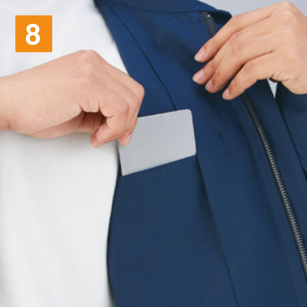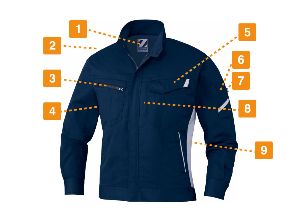 肌寒い日の一枚としても夏の紫外線対策としても、着やすく機能性も多いハイスペックなジャンパー。T/C素材のサマーツイルで、軽くて通気性も良く、爽やかに着用できます。脇部分はメッシュ生地になっているので、蒸れも少なく快適。脇下部分に消臭&抗菌テープが施してあるため、気になる臭いも防ぎます。肩口はアクションプリーツ仕様で、突っかかり感を防止。ペン差しや内ポケットの他、胸には二重ポケットやファスナー付のものもあり、収納力も十分です。