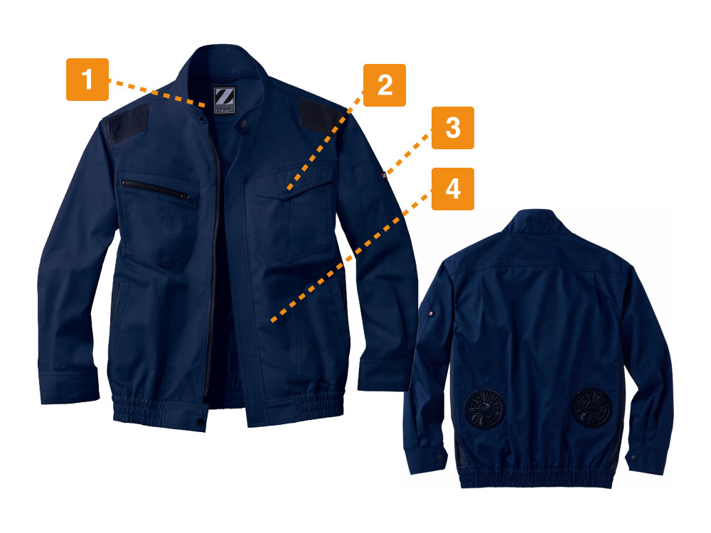 ブルゾン内を駆け巡る爽快な風を作り出す空調服長袖ブルゾン