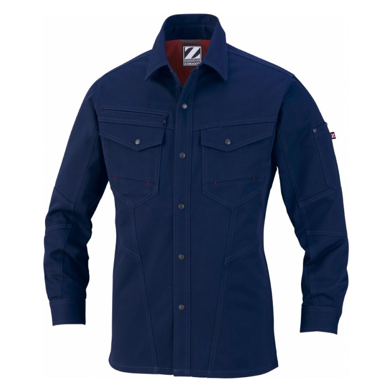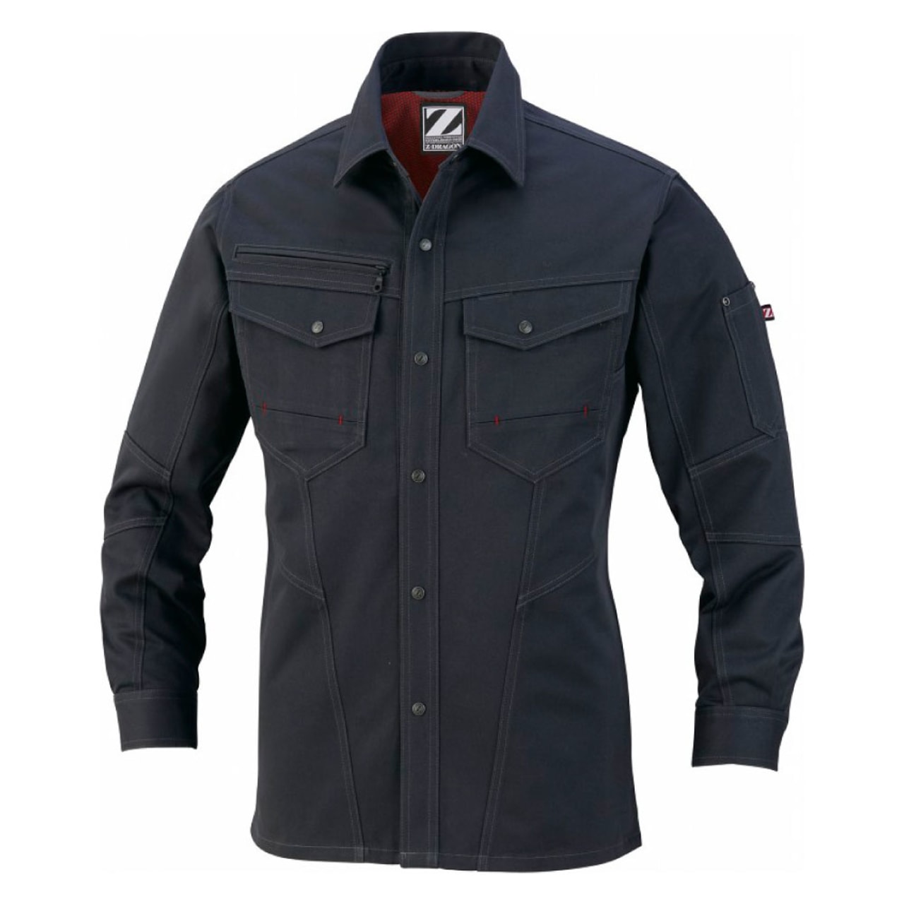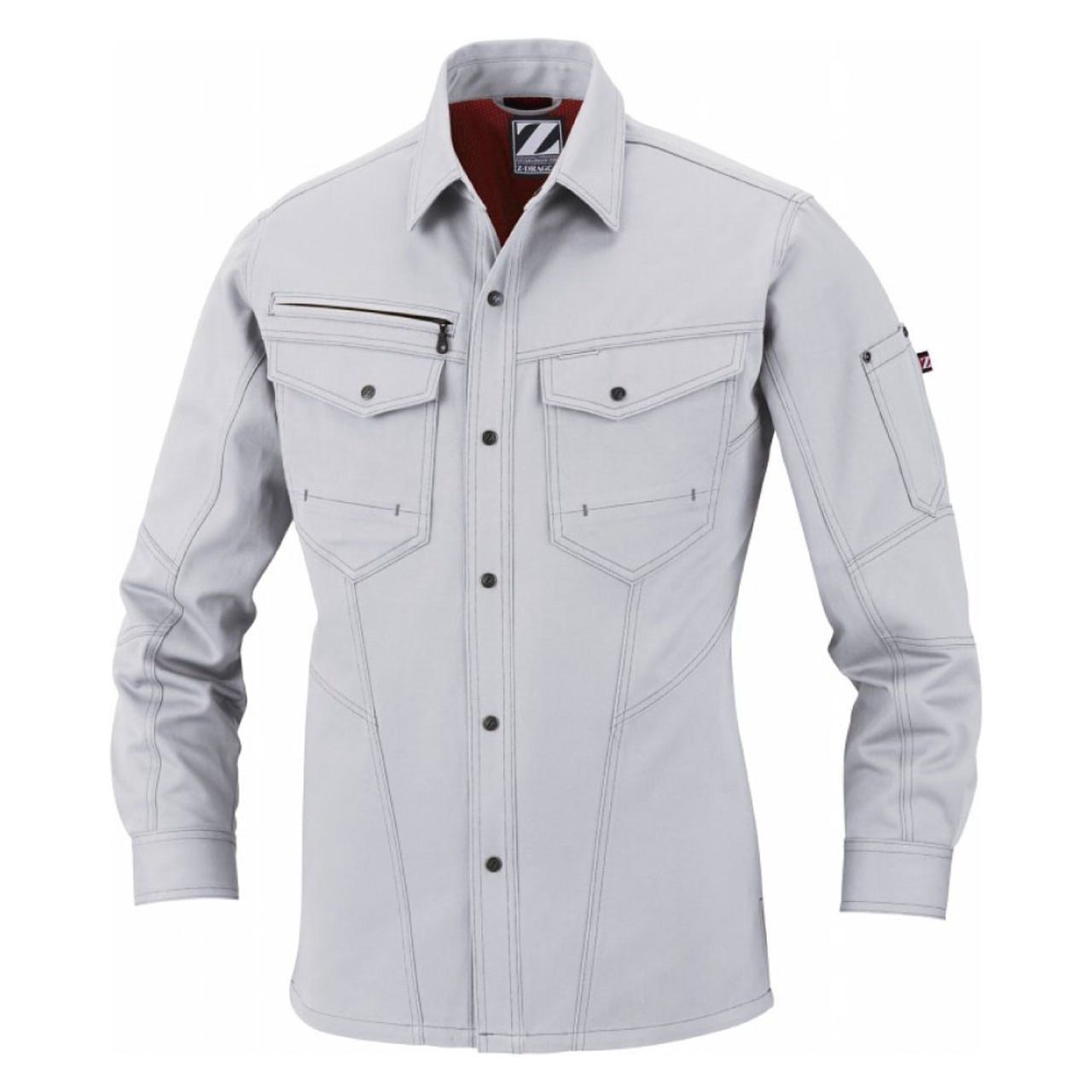 綿100%で仕立てられた自重堂Z-DRAGONの長袖シャツは、通気性が良く熱伝導率が低い綿の特性により、ほどよく体温をキープすることができ年間を通して着用することができます。チノクロス生地は、チノパンなどに用いられるポピュラーな生地で、昔から軍服にも使用されていたほど丈夫さには定評があります。ワークウェアに欠かせない耐久性と肌ざわりの良さを両立する長袖シャツです。カラーはネービー、シルバー、シックブラック、キャメルの定番色を採用し、レディース対応シルエットも取り入れた豊富なサイズ展開で、さまざまなワーカーを想定したラインナップとなっています。