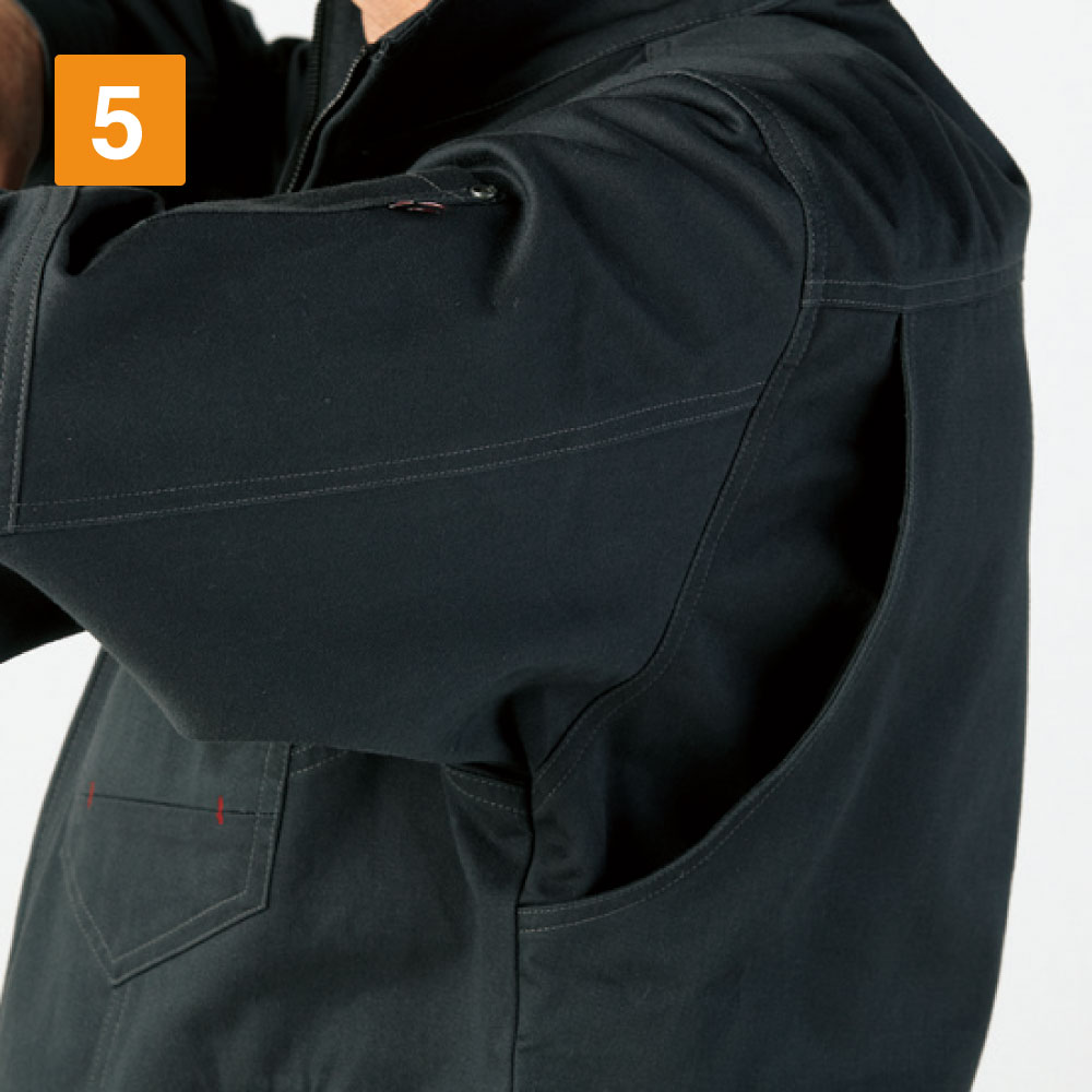 夏場、日本各地でかなりの猛暑になるのが当たり前になりました。そのような環境の中で長時間作業するのは厳しいでしょう。特にジャンパーを着用して作業すると、背中の蒸れが気になるはずです。自重堂の長袖ジャンパーの特色として、背中をメッシュ仕様になっている点に注目です。通気性に優れているので、厳しい暑さの中でも蒸れにくくなっています。また汗を大量にかくと、体臭が気になるという人も多いでしょう。こちらのジャンパー、両脇と両肩のところに消臭・抗菌テープが搭載されています。汗臭さを気にすることなく、長時間連続作業ができるでしょう。