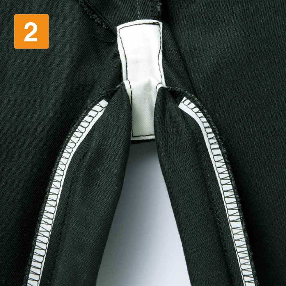 夏場、猛暑日の現場での作業は大量の汗をかくでしょう。この時人によっては自分が汗臭くないのか心配という人もいるでしょう。自重堂のこのノータックパンツは、股下のところに消臭・抗菌テープが施されています。ですから体臭を吸収してくれるので、汗臭さを気にする必要はありません。特に股下などで臭いがすると恥ずかしいでしょう。股下を中心に臭い対策をしっかり行っているので、体の臭いのことを気にせずに仕事に集中できるでしょう。