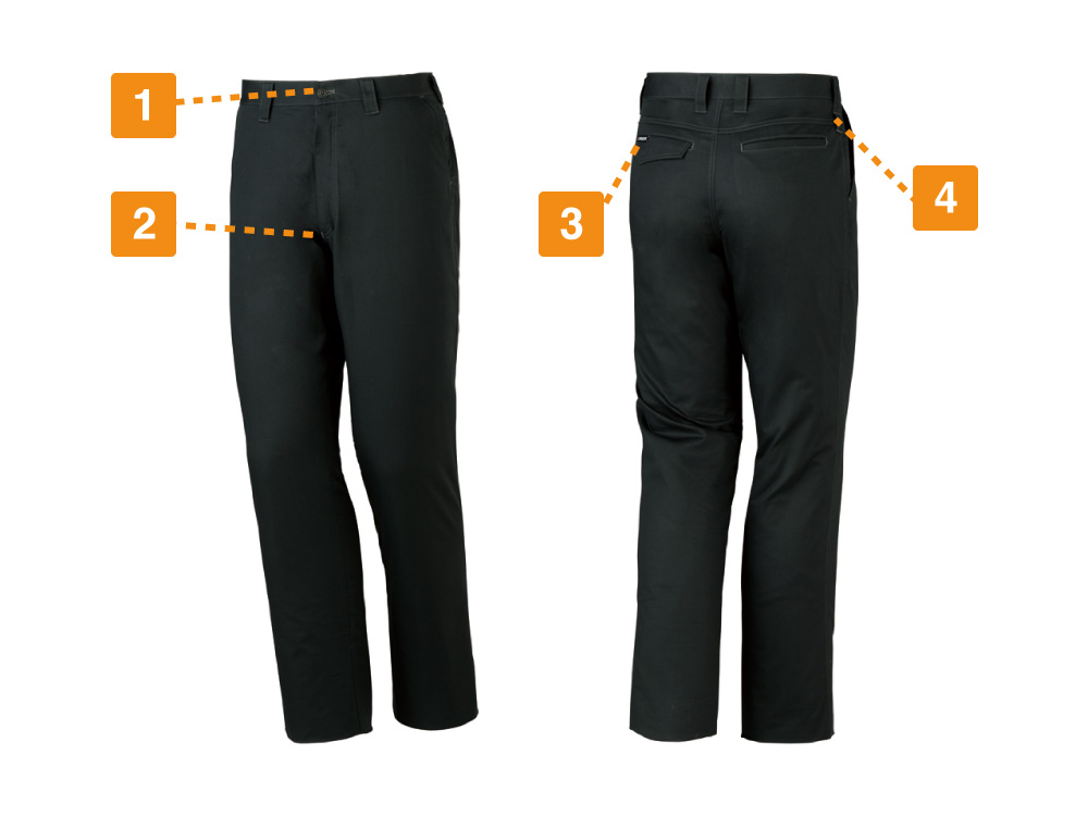 自重堂のこのノータックパンツの特徴として押さえておきたいのは、綿100%のパンツである点です。体になじみやすいので、着心地がよく長時間着用していても決して違和感がありません。しかも綿は耐久性に優れていて、何度洗濯してもしわやヨレが起こりにくいです。破けるような心配もないので、ロングスパンで見たコスパという面でもなかなかの優等生です。しかも綿は火にも強いですし、静電気も溜めにくい性質があります。可燃性の強いものを取り扱うような現場では、作業員の安全を確保する意味でもおすすめのパンツです。