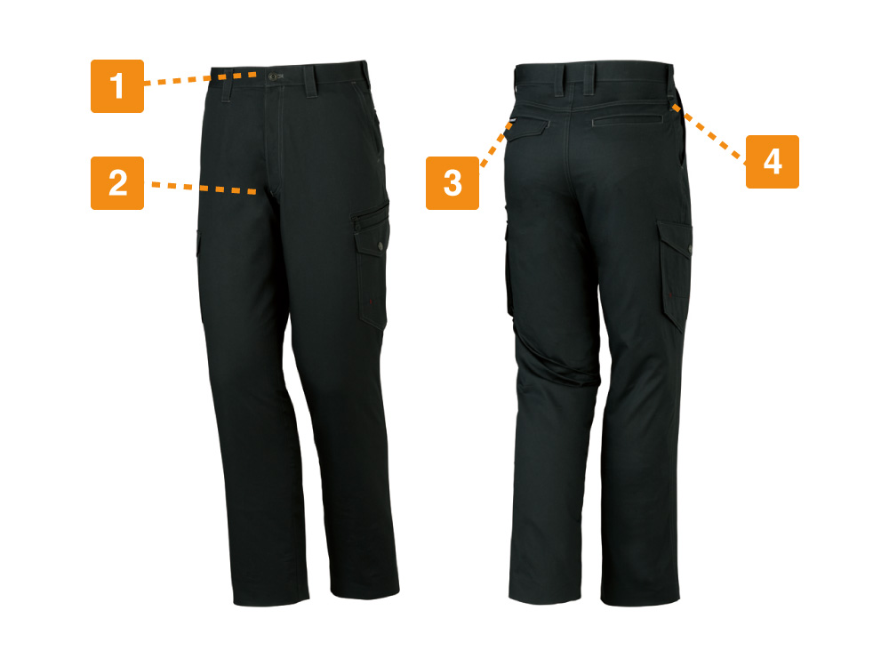 こちらのノータックカーゴパンツは、綿100%というところが魅力の一つです。天然素材ならではのソフトな肌触りで、現場に出る際に気持ちよく着用できます。綿は耐久性に優れていて、洗濯を繰り返し行ってもなかなかヘタりません。長期間着続けられるので、コスパ重視の経営者の方もきっと満足できるでしょう。さらに綿は火や熱に強いところも注目ポイントです。高温や火を取り扱う現場では、作業員の安全の確保は何よりも大事です。そのような要望にもこの綿100%のノータックカーゴパンツであれば、しっかり応えられます。